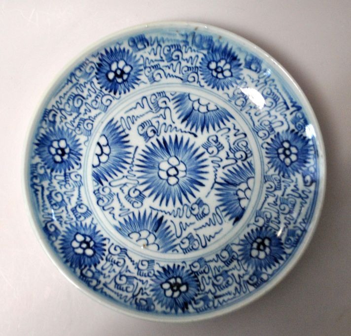Kinesisk tallerken, blå/hvid, 19. årh.