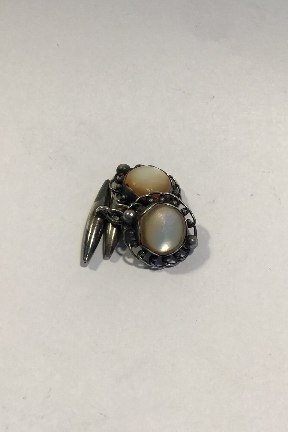 Georg Jensen Sølv Manchetknapper No 27 (1915-1927) Perlemor Diam 1.7 cm Samlet vægt 7.3 gr