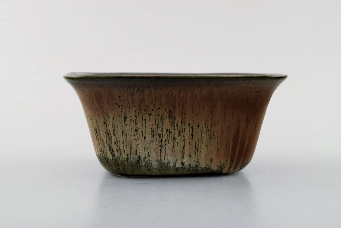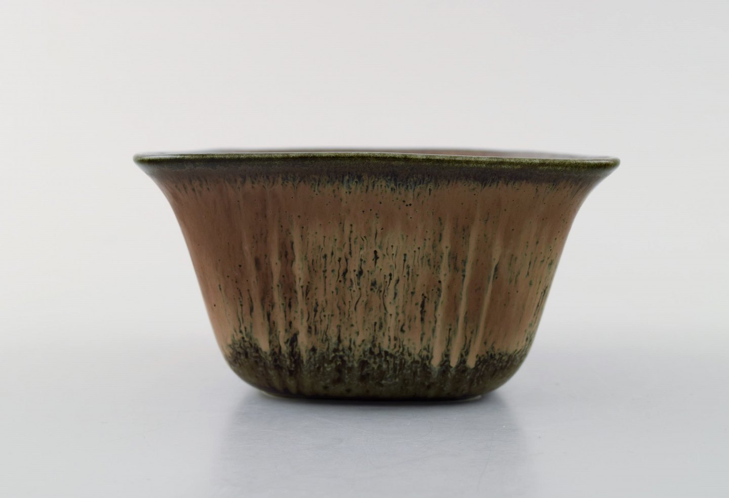 Gunnar Nylund for Rörstrand / Rørstrand. Skål i glaseret keramik. Glasur i lysebrune og grønne nuancer.
