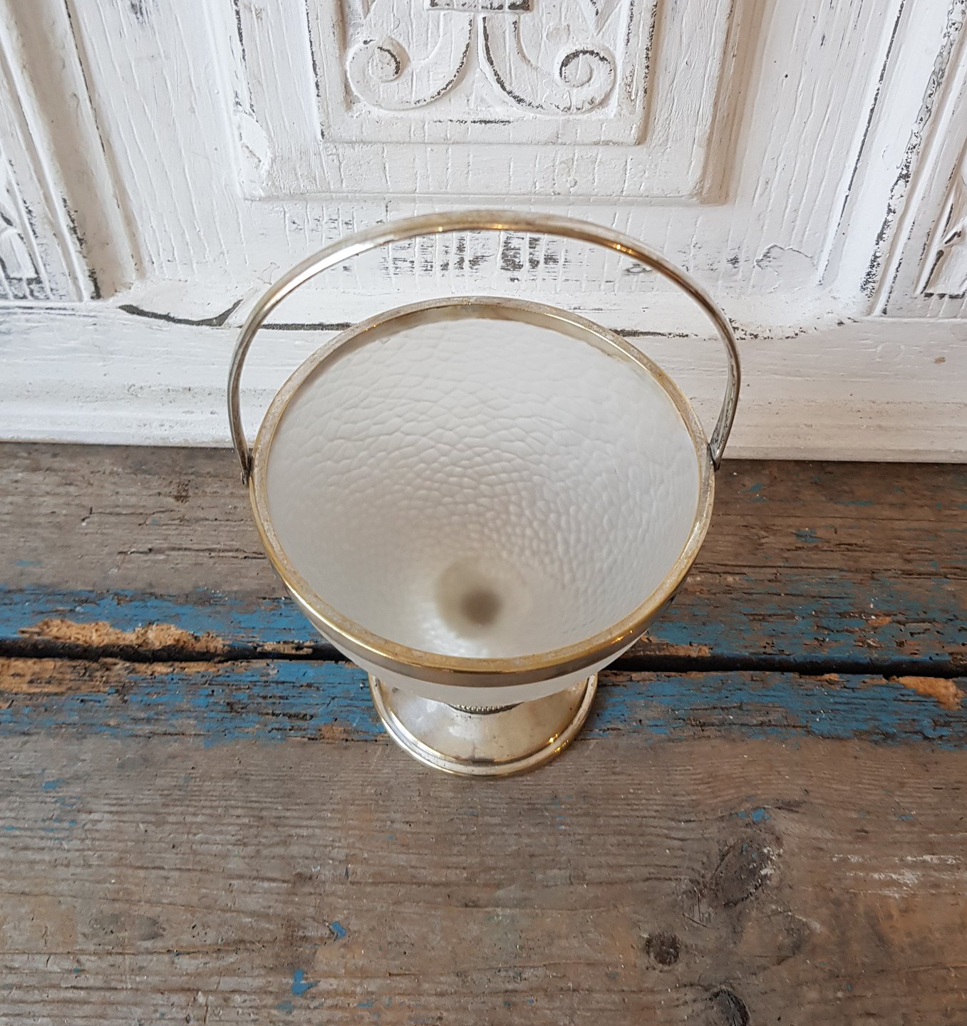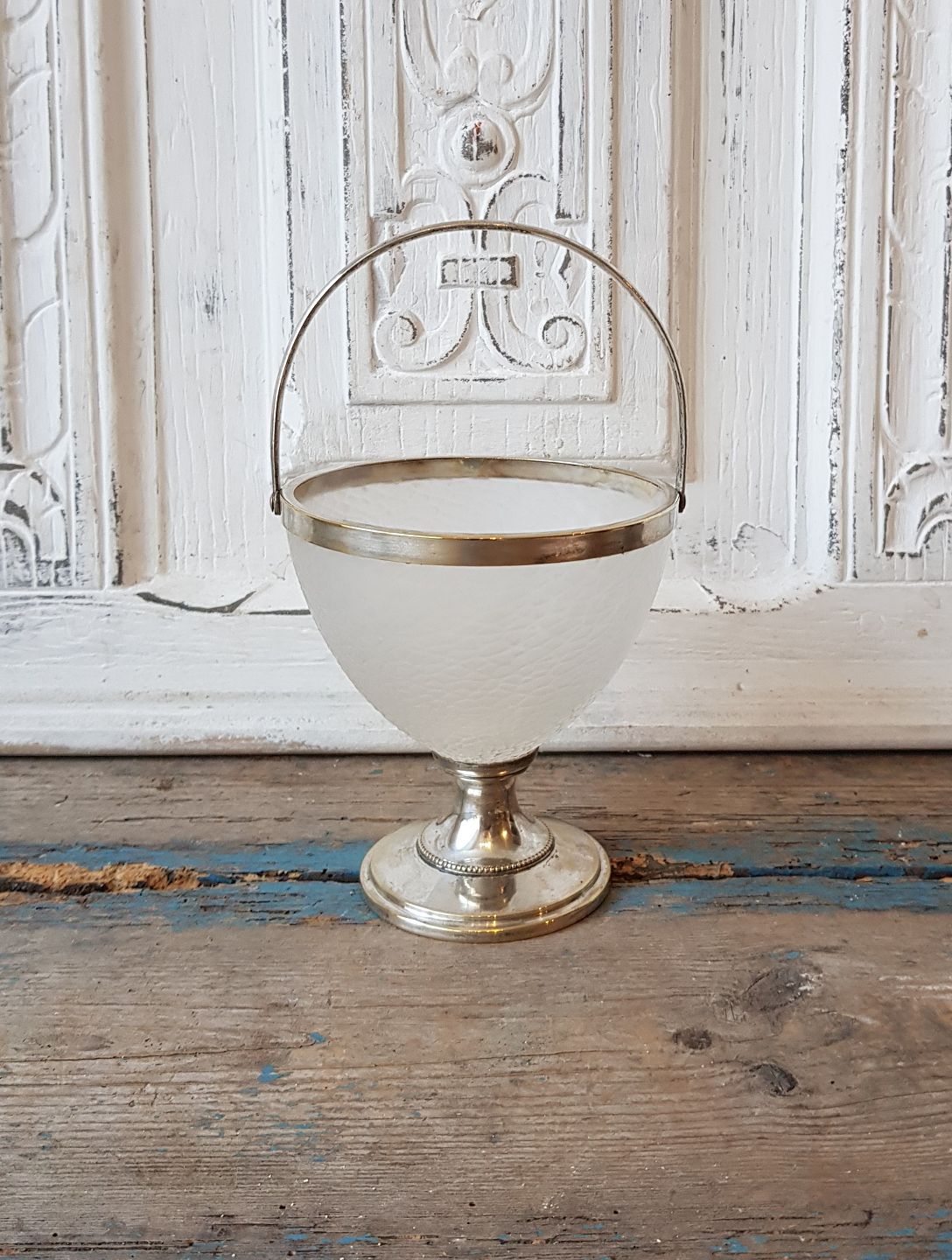 1800tals sukkerskål på fod med forsølvet hank.