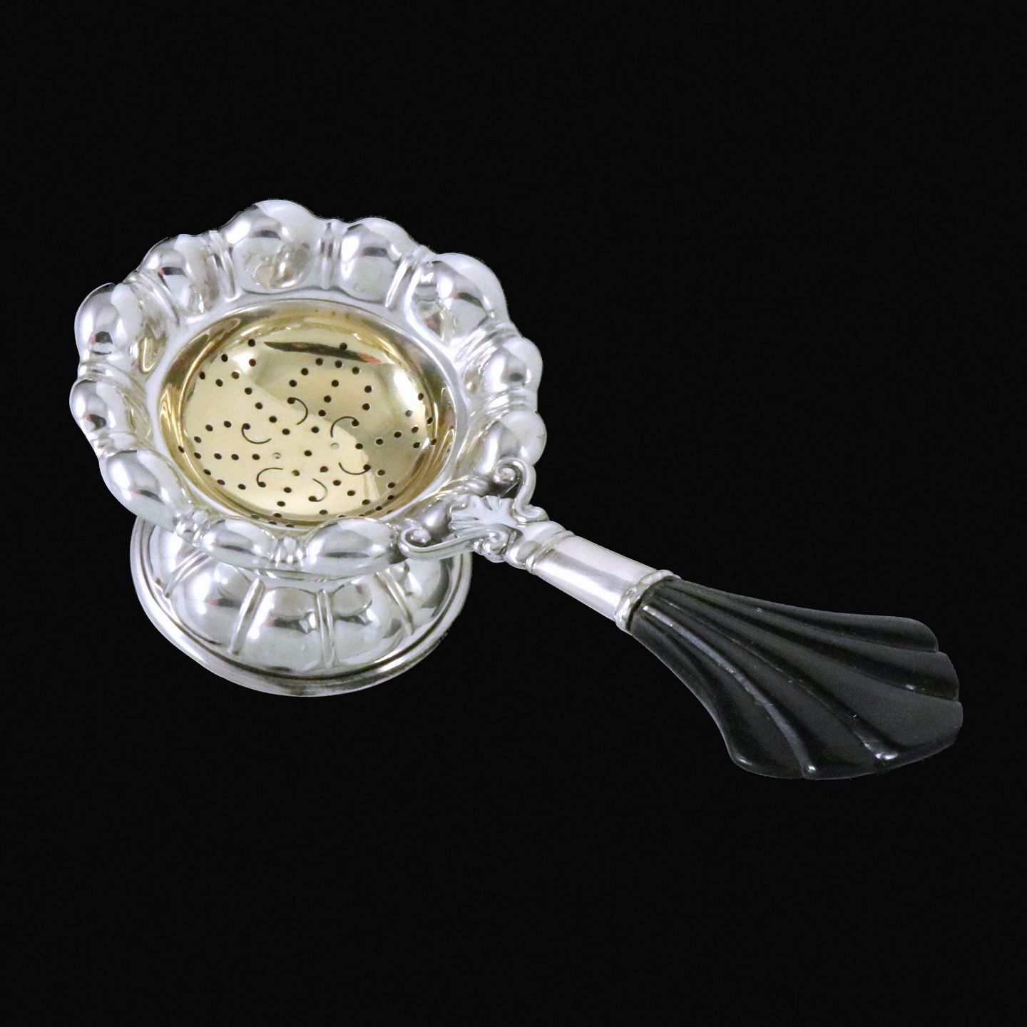 Carl M. Cohr. Silver Tea Strainer on Stand, partly gilded.