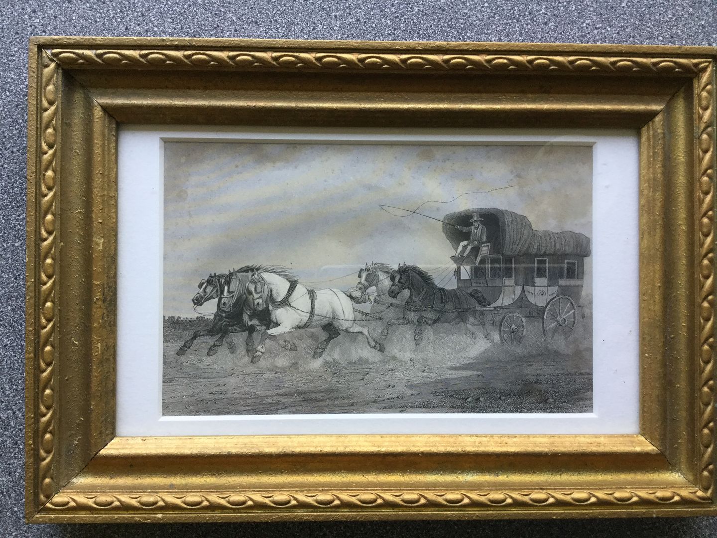 Stålstik af H. Bibby - Fransk Diligence 1856.