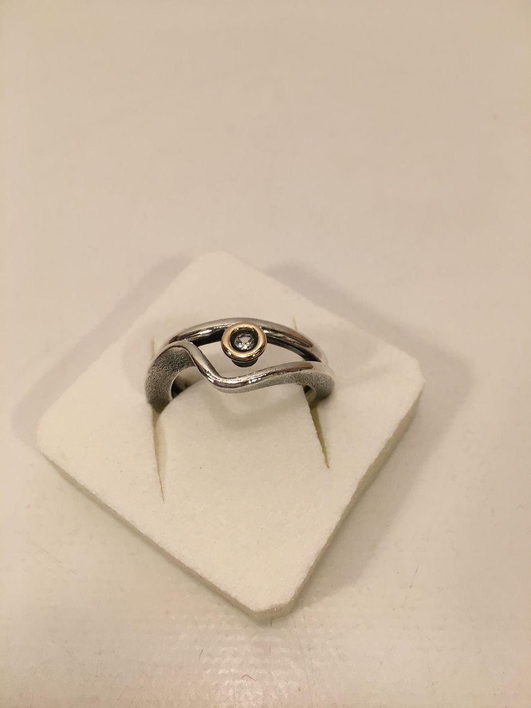 med zirkon omkranset af forgyldt sølv.
