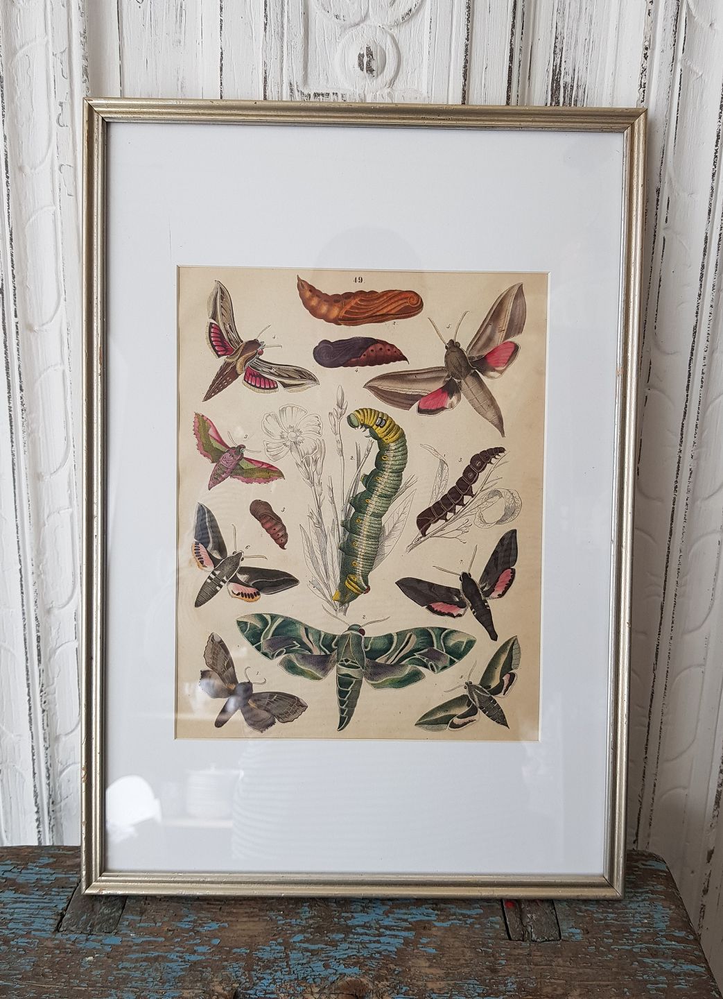 1800s hand-colored print with butterflies in a beautiful silver frame.