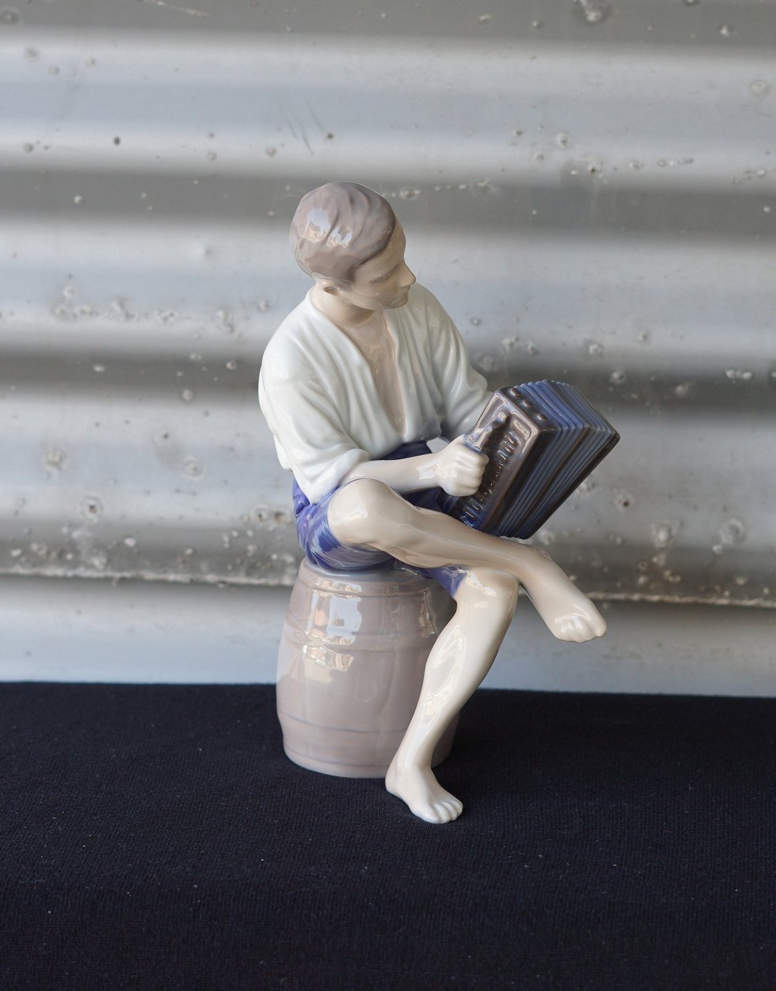 Figur i porcelæn med motiv af ung mand, der spiller på harmonika. Nr. 1661