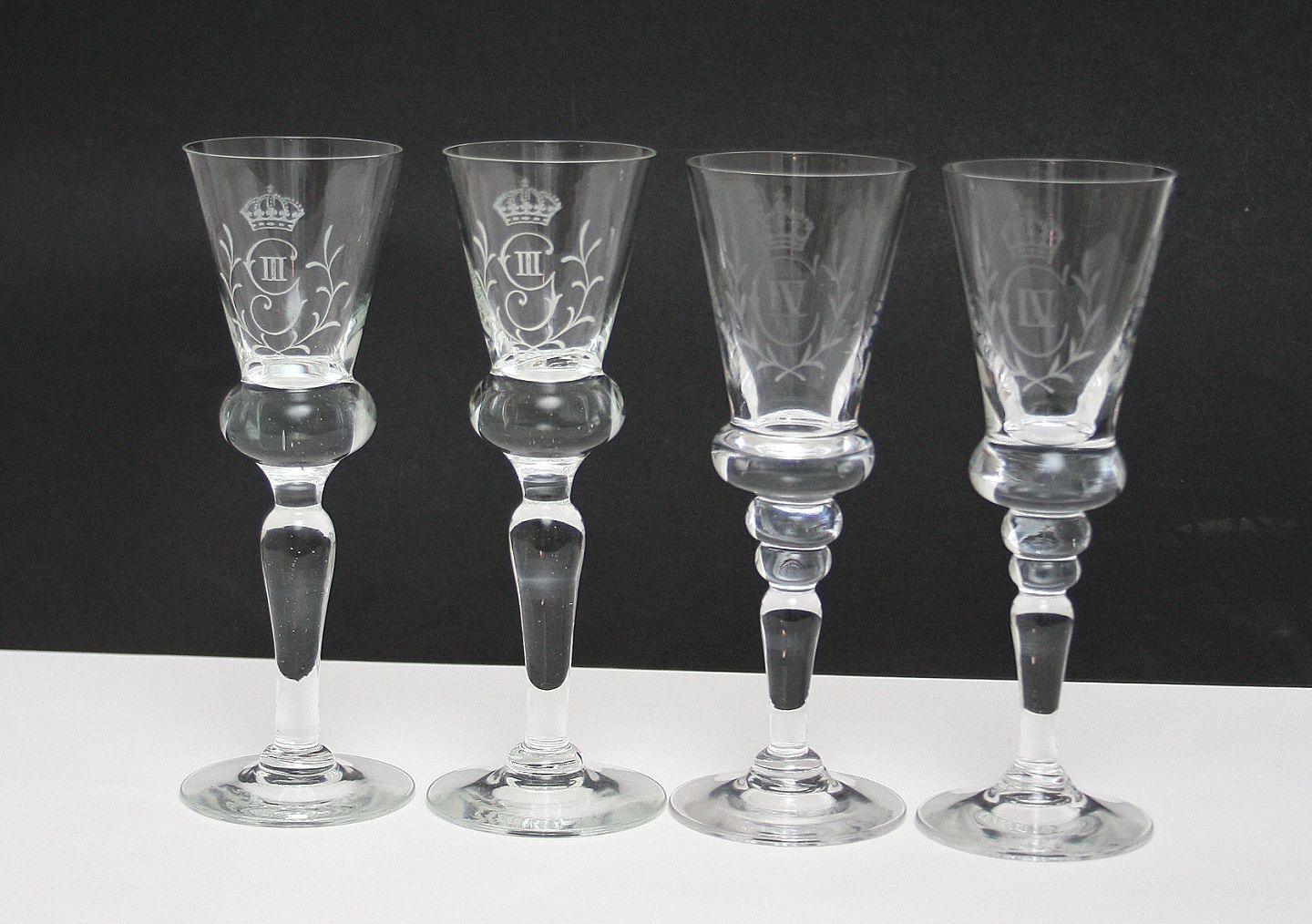 Snapseglas med Gustav III og Christian IV gravering.