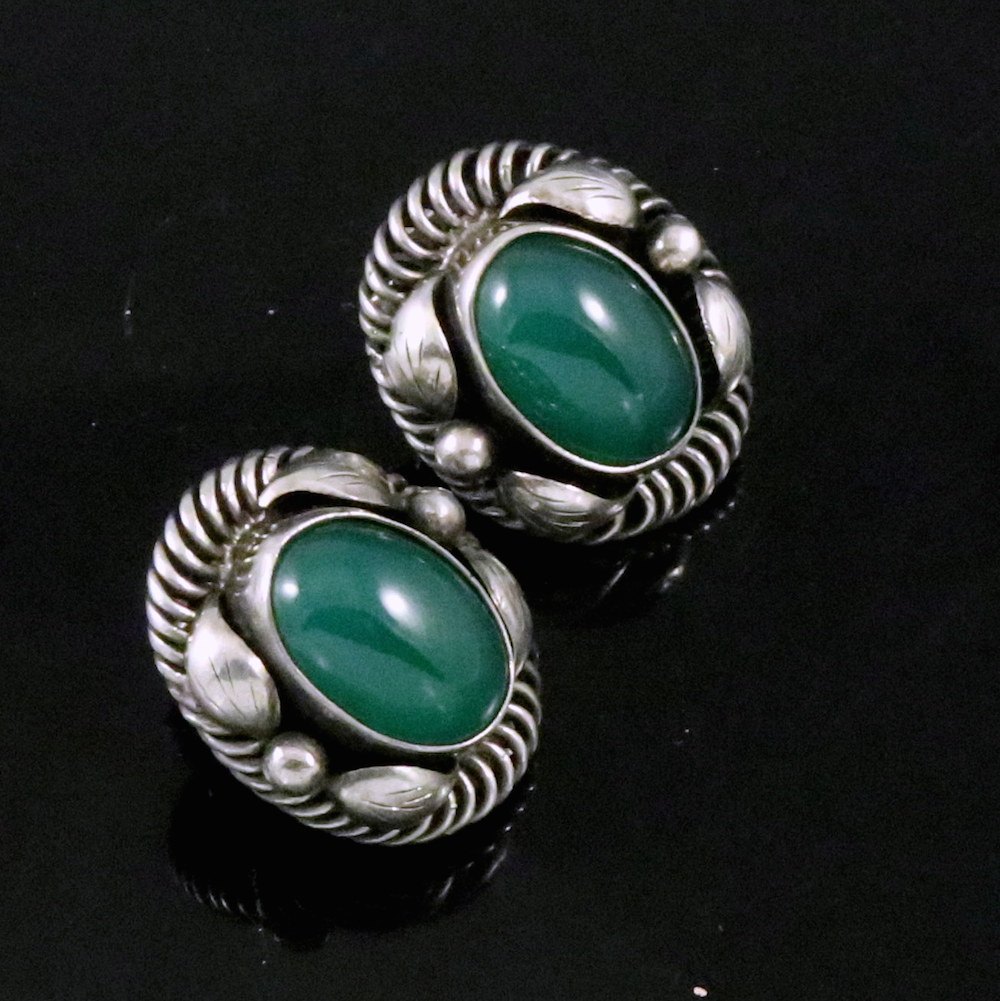 Leif Ulrich Daurup. Øreklips i sterling sølv med grøn agat.