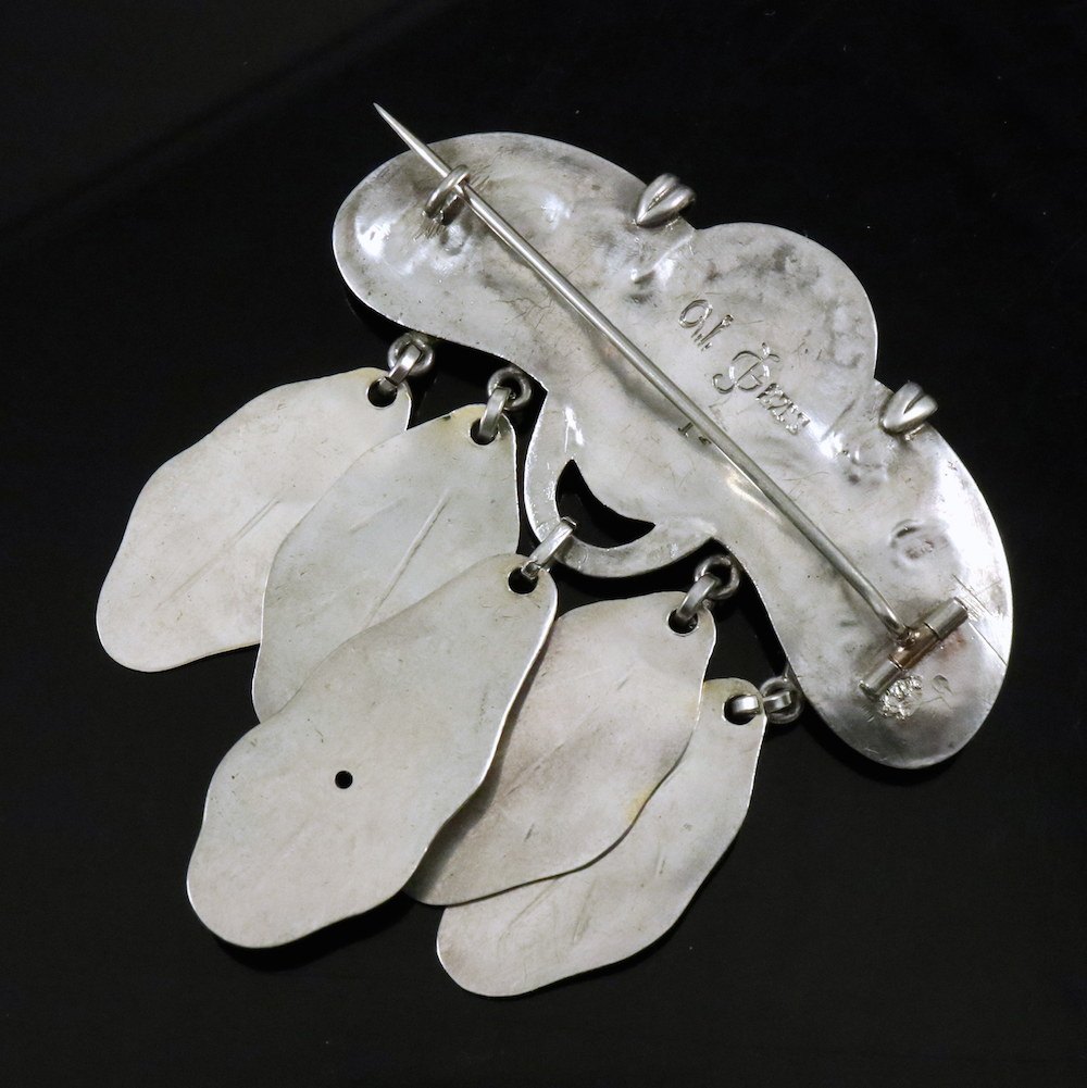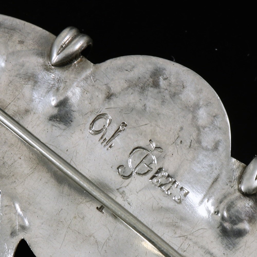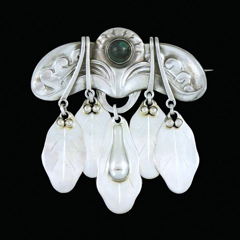 Georg Jensen. 826S Silver Brooch with Malachite #14 - 1904-1908 Hallmarks