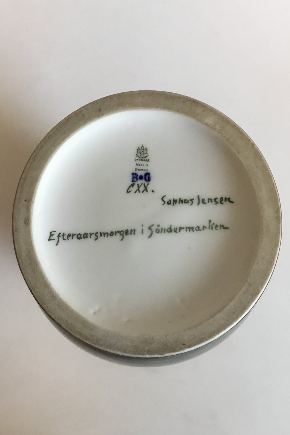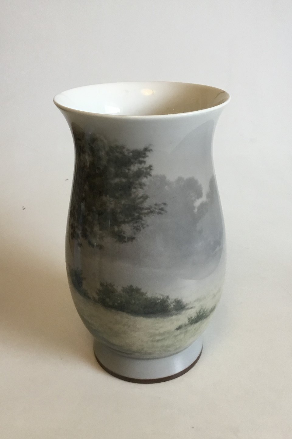 Bing & Grøndahl Art Nouveau unikavase. Signeret Sophus Jensen, "Efteraarsmorgen i Søndermarken". Måler 30 cm