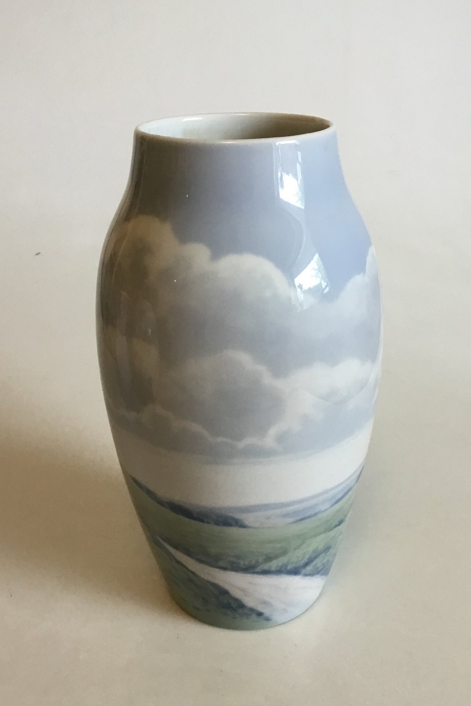 Bing & Grøndahl Art Nouveau vase No 8797/243. Signeret AS for A. J, Schou, "Skamlingsbanken". Måler 24,5 cm