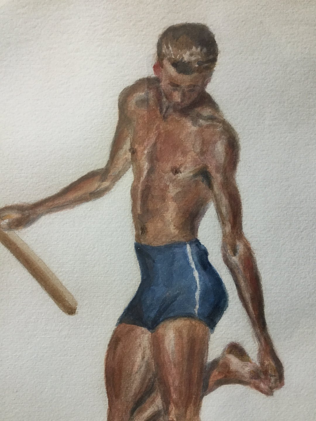Akvarel af Knud Fløystrup 1940 - Ung atlet.