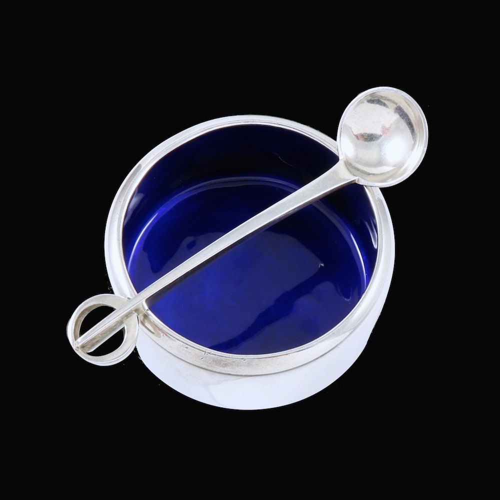 Svend Weihrauch - F. Hingelberg. Sterling Silver Salt Cellar with Enamel and Spoon #33703.