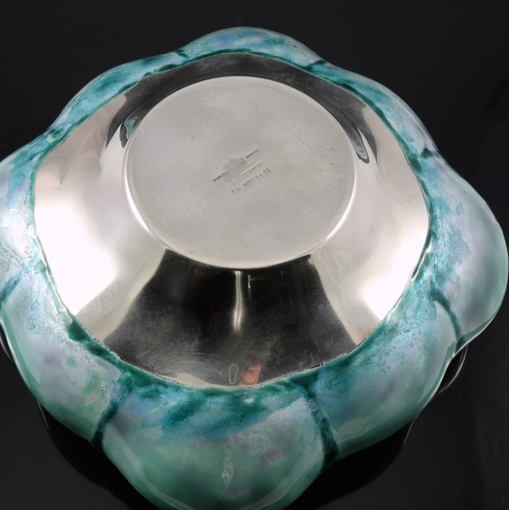 A. Michelsen. Sterling Silver Fruit Bowl with Enamel - Inger Hanmann 1980