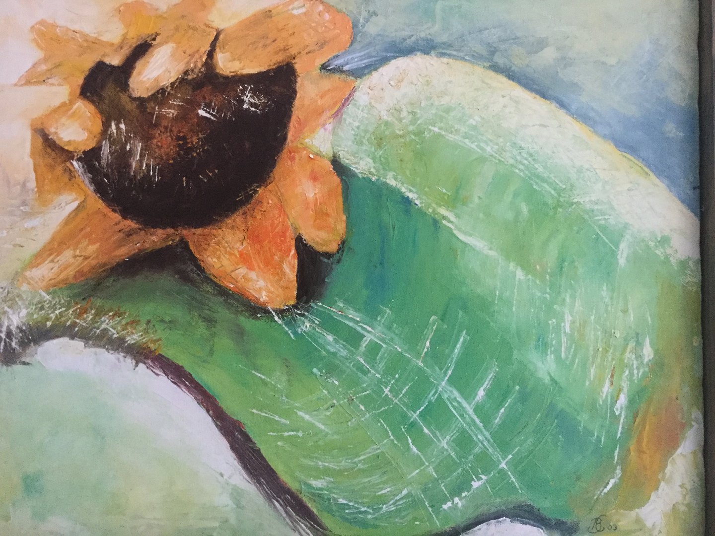 Maleri af Britta Christensen 2003 - Komposition med Solsikke.