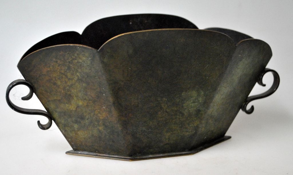 Bronze vase, art deco, 20. årh. Danmark. Stemplet: Ildfast bronze. Patineret. Med to hanke. L.: 20 cm. H. 9,2 cm.