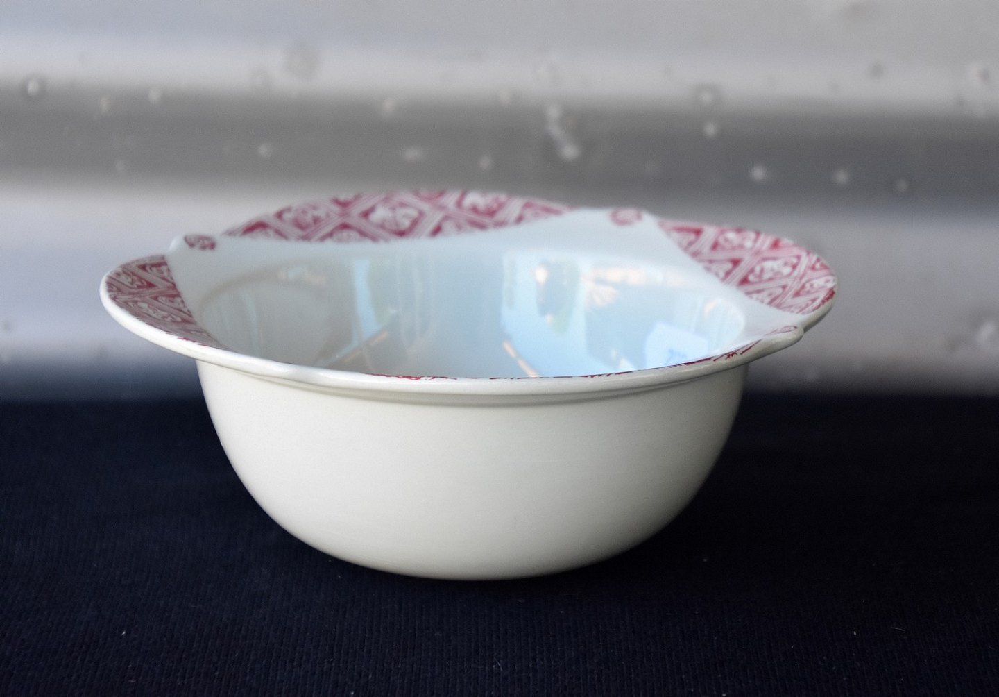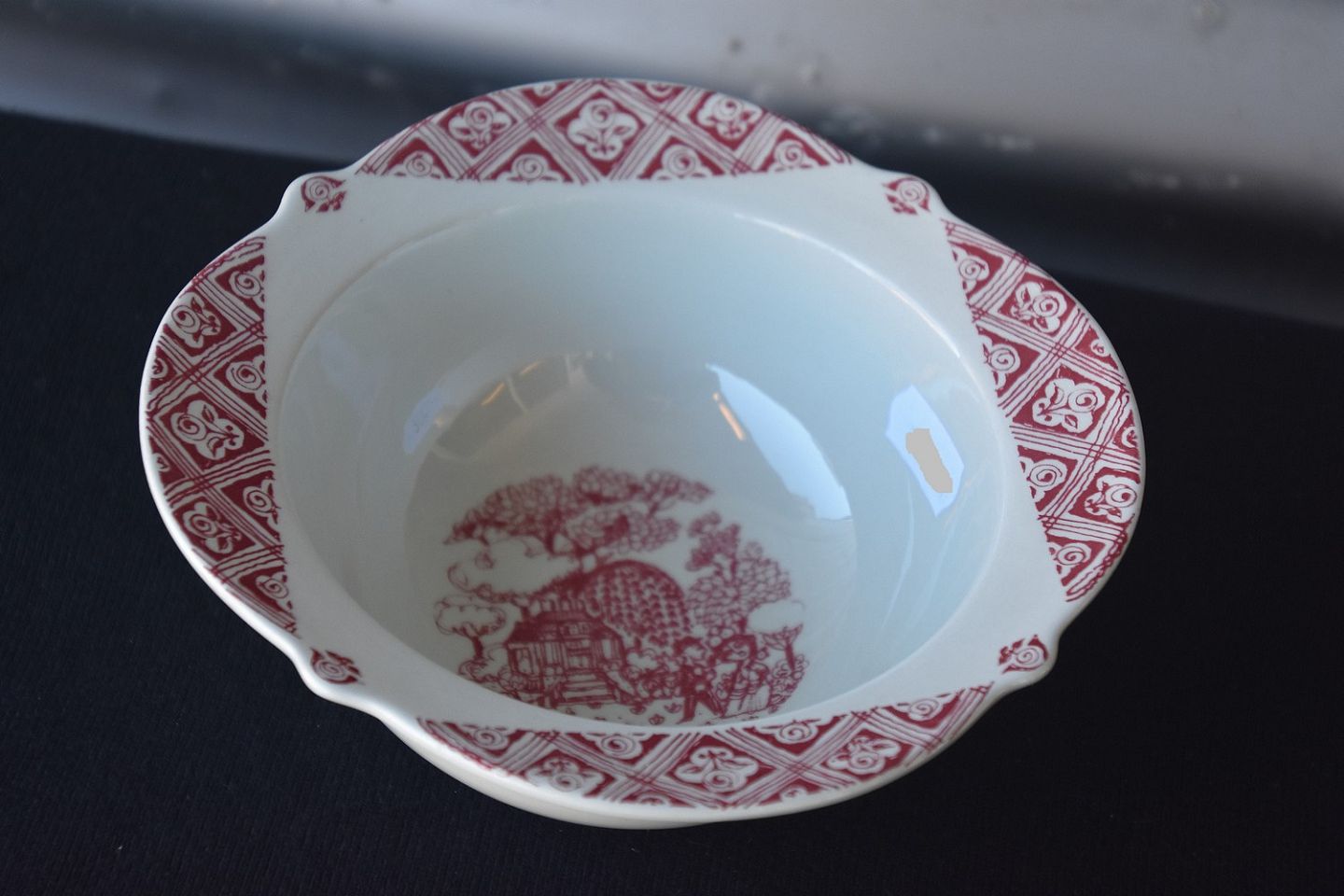 Rosalinde skål, nr. 8010. Skålen er en "Eremitage"-skål og har rød dekor