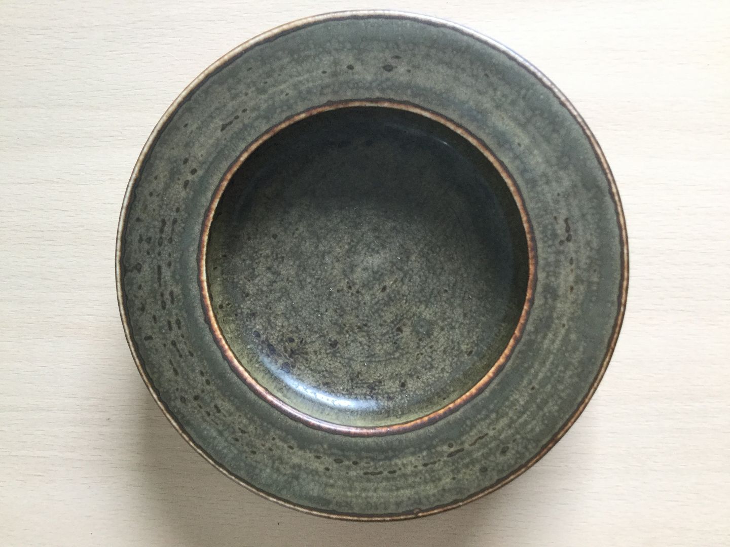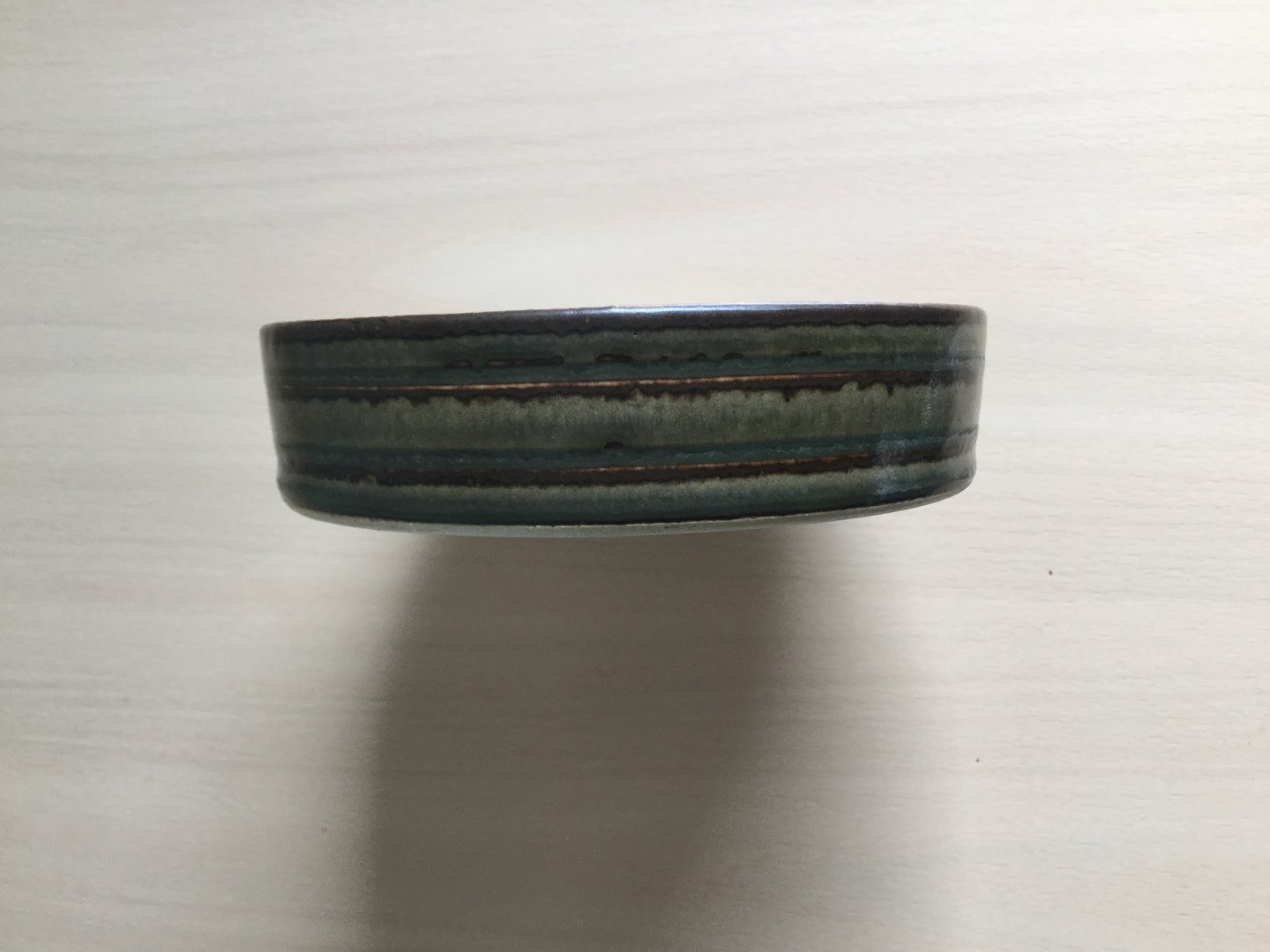 Rundt askebæger med lækker brun/grøn glasur.
