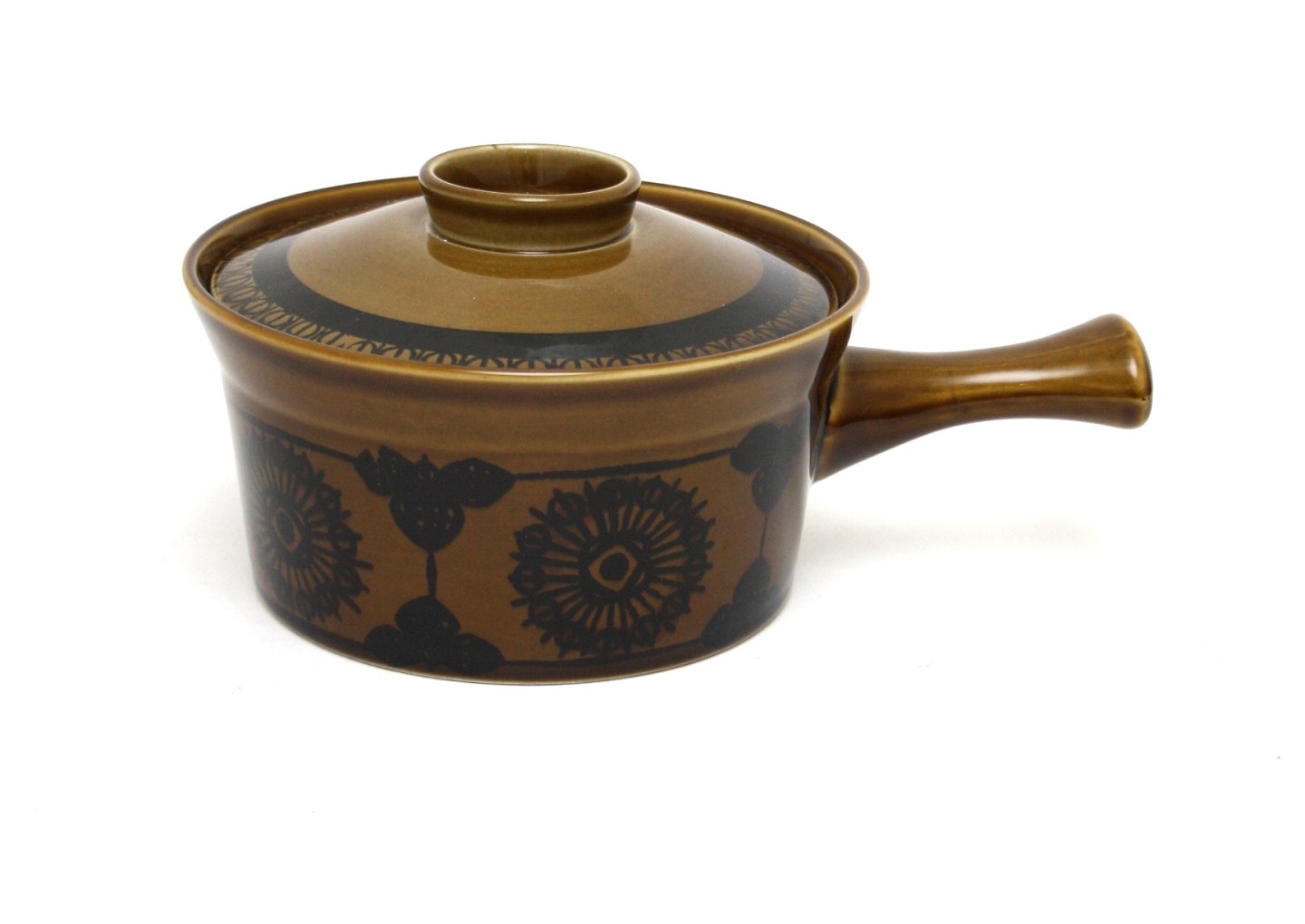 Kasserolle med låg. Længde 25 cm. Diameter 18 cm. Højde 11 cm. Pris: 175 kr.