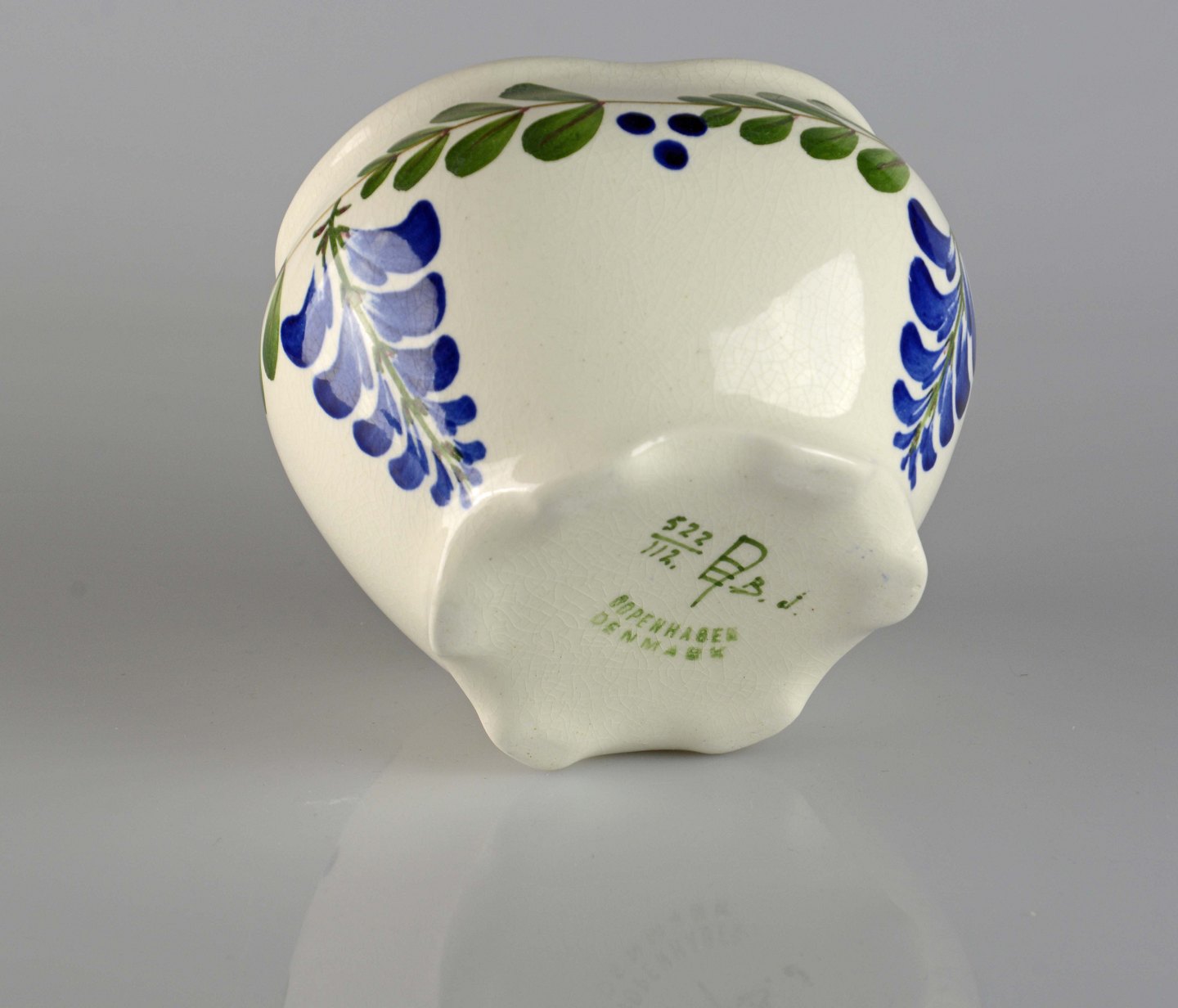 Blåregn trekantet skål i fajance fra Aluminia nr. 522/112