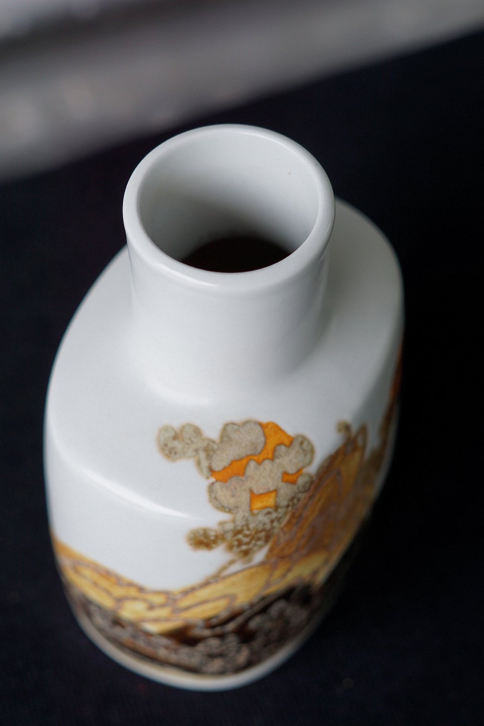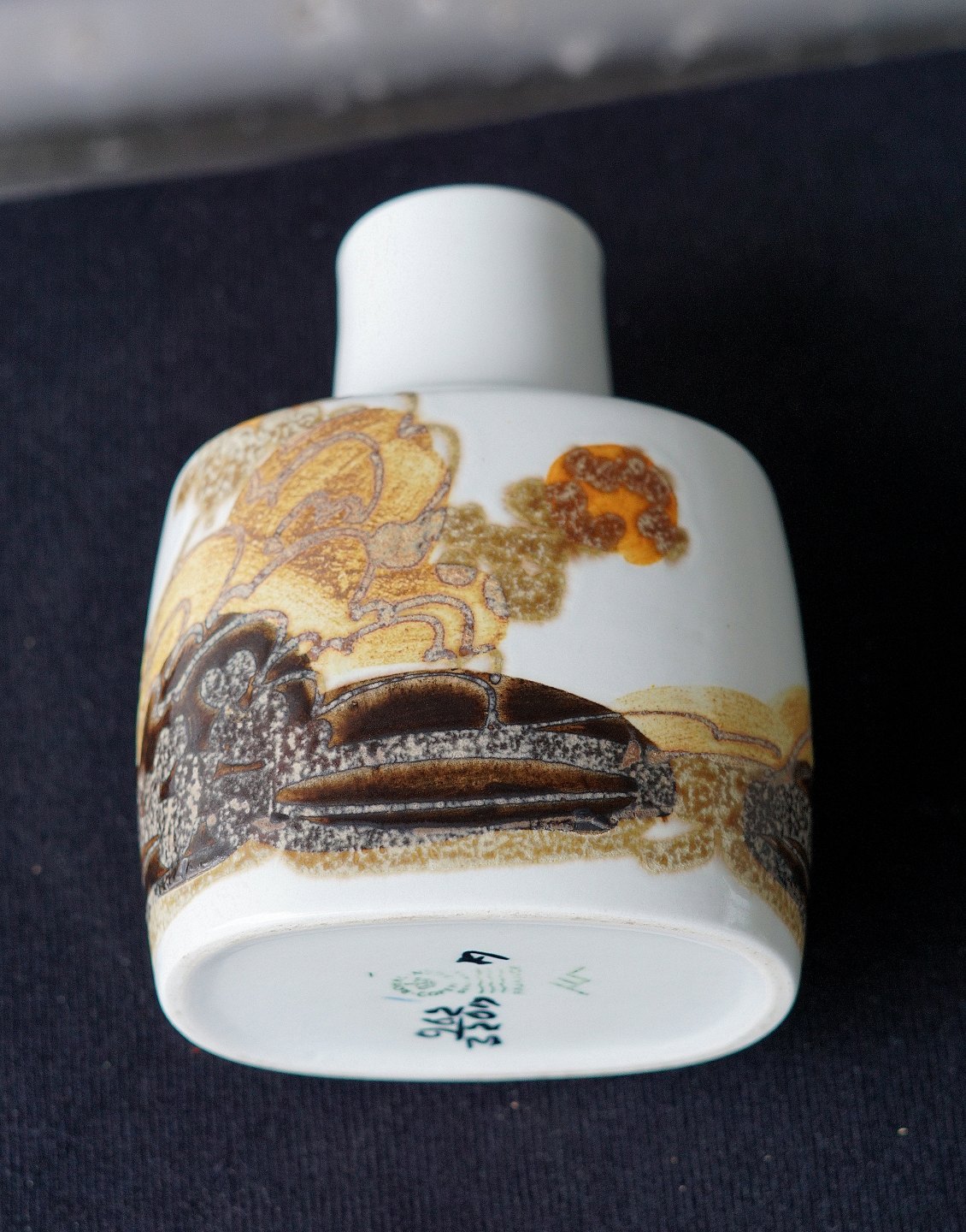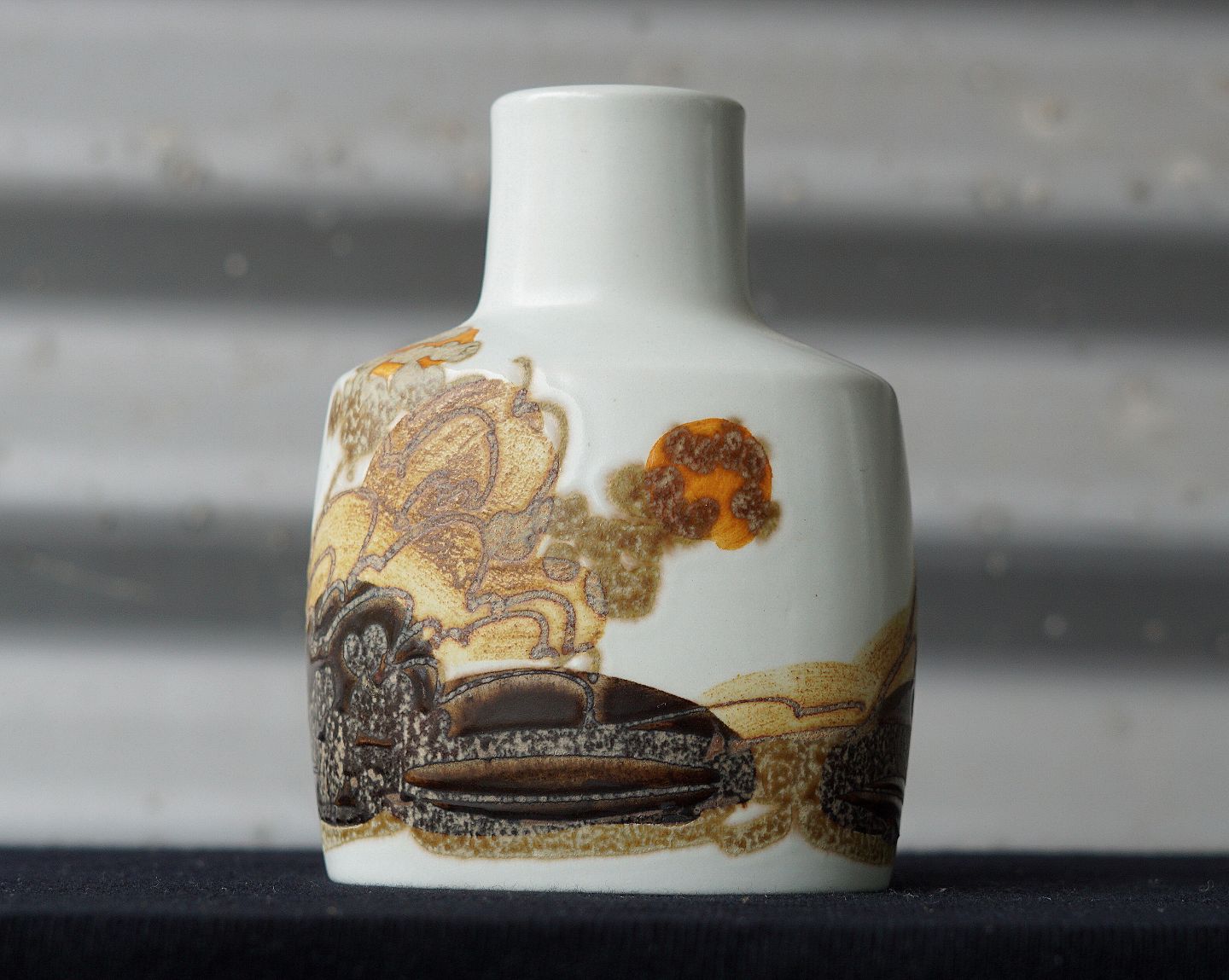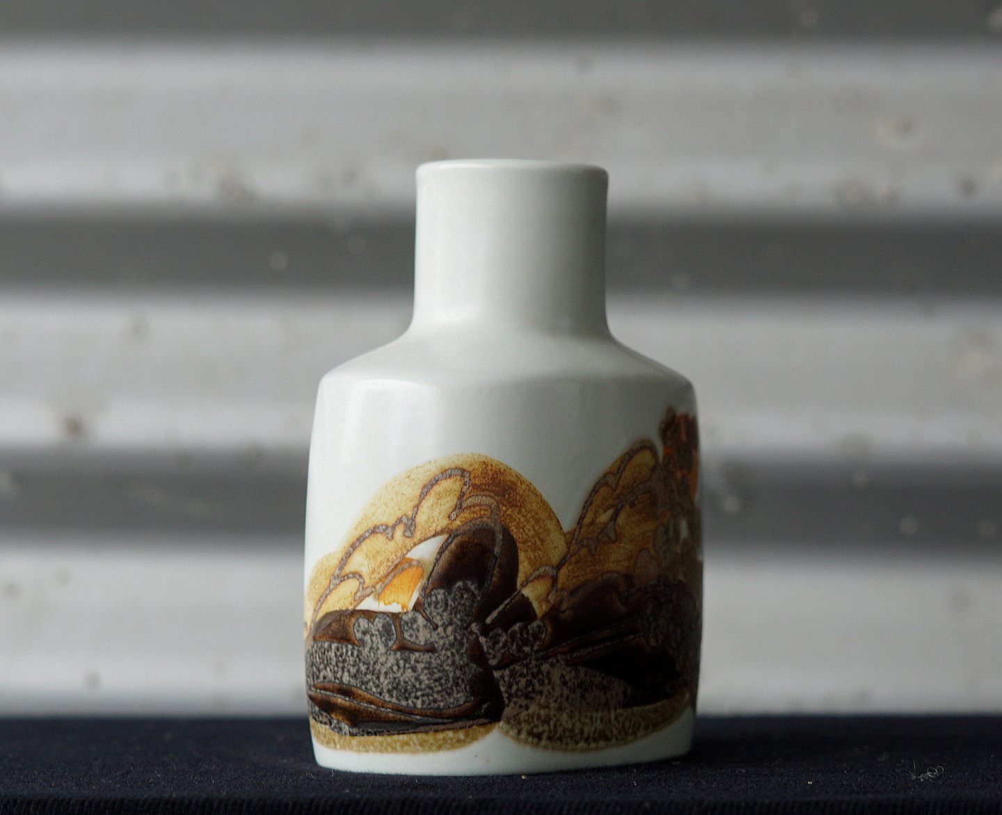 Baca-vase nr. 962/3207. Lille retro vase fra Royal Copenhagen formgivet af Ellen Melmer, der har dekoreret en del ting i 70'erne med gule, brune og orangefarver
