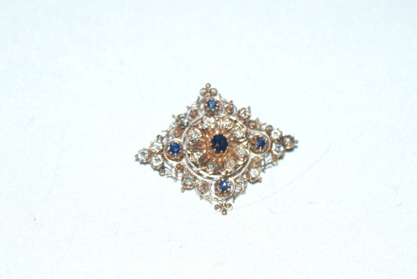 Broche med safir og brillianter i 14 karat Guld