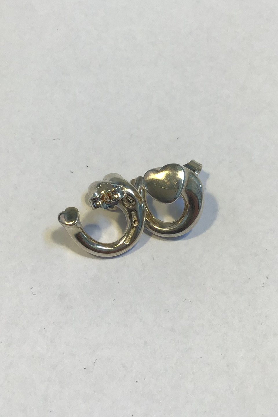 Georg Jensen Sterling Sølv Hjerte Øreringe 2002 - Regitze Overgaard Måler1.5 cm Vægt samlet 8.1 gr