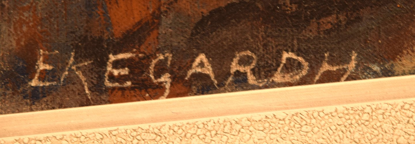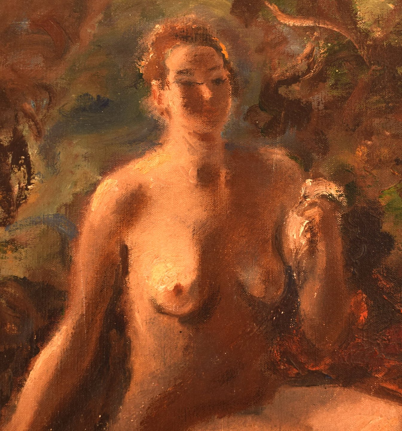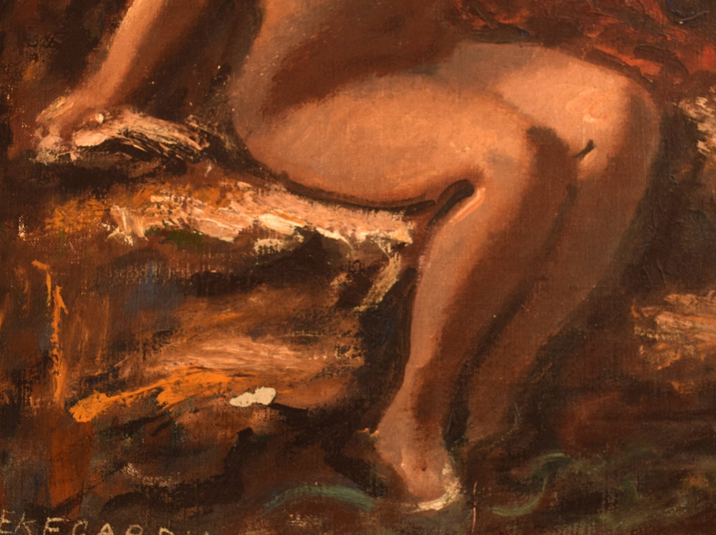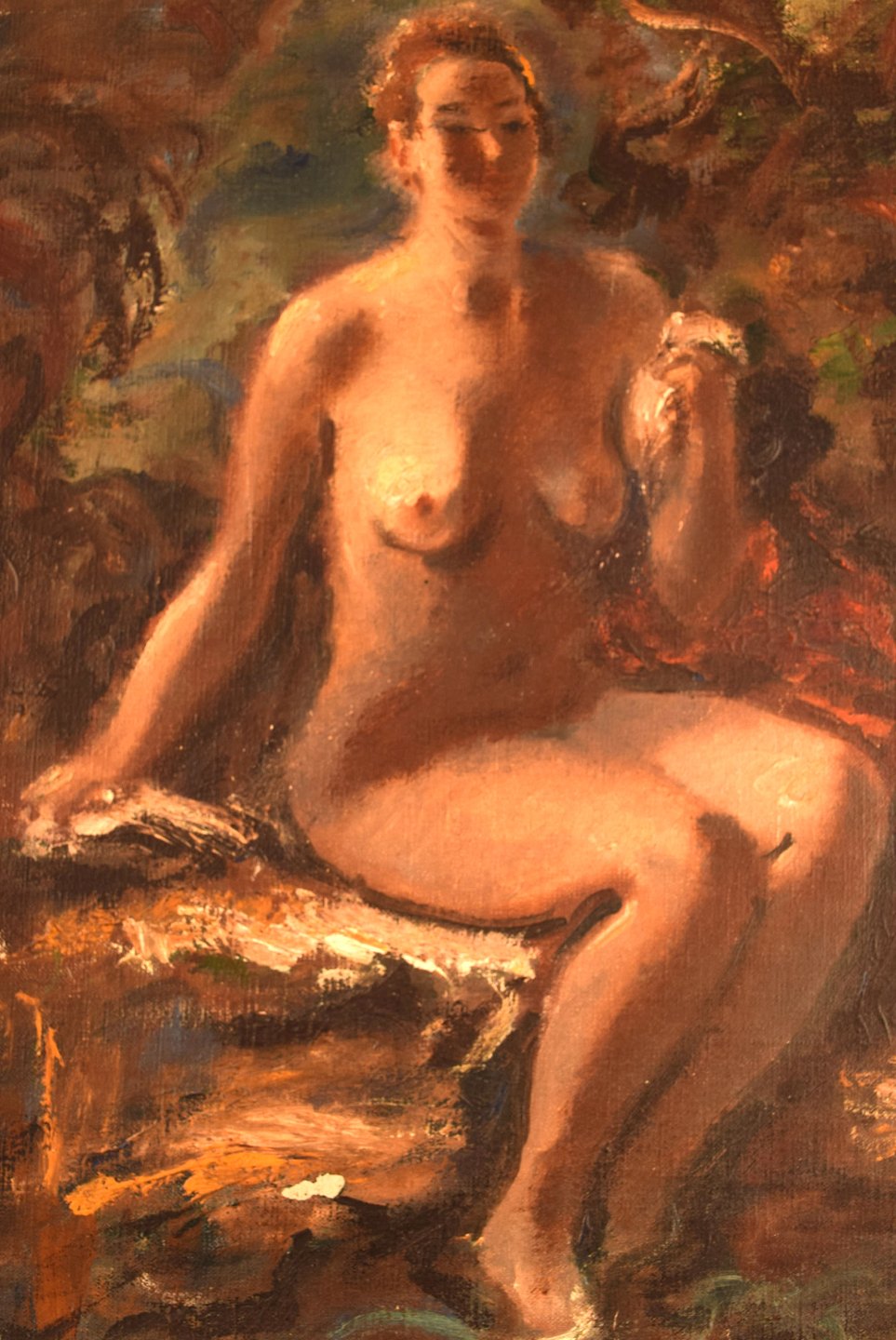 Hans Ekegardh (f. 1881, d.1962), Svensk kunstner. Olie på lærred. Siddende nøgenmodel, landskab i baggrunden. 1940'erne.