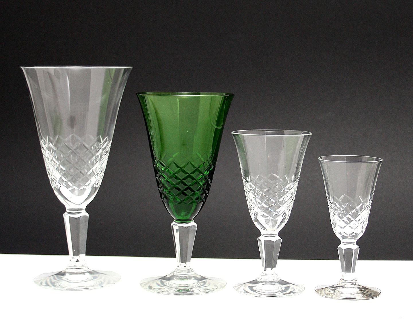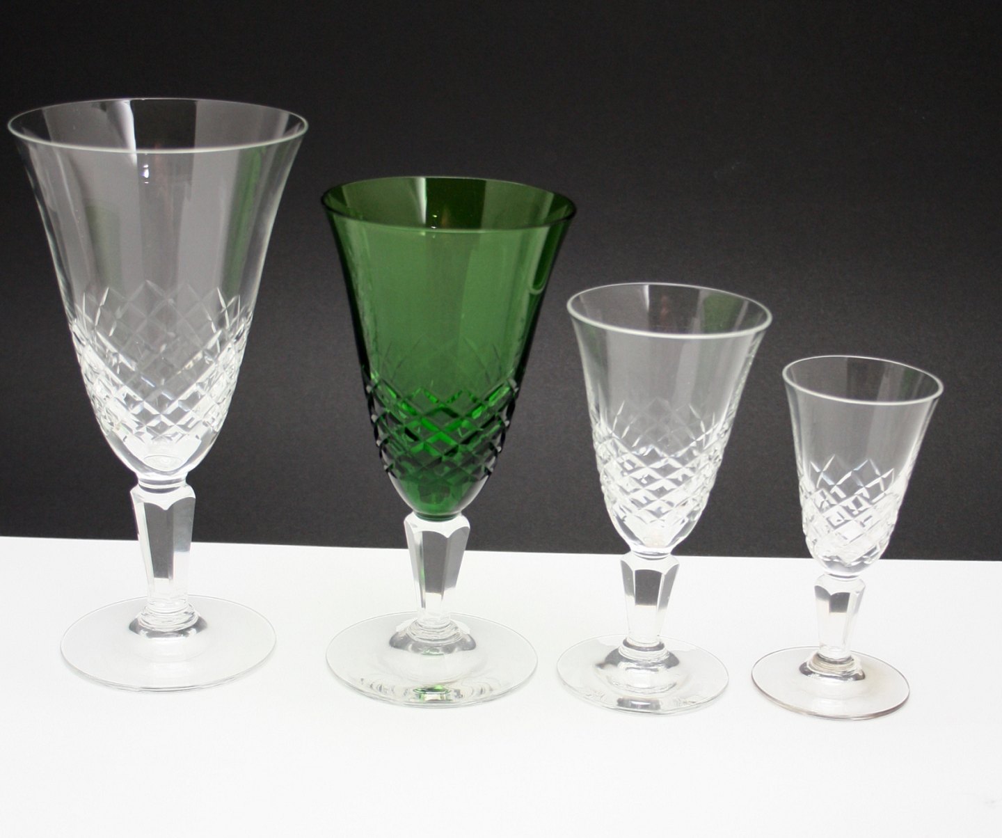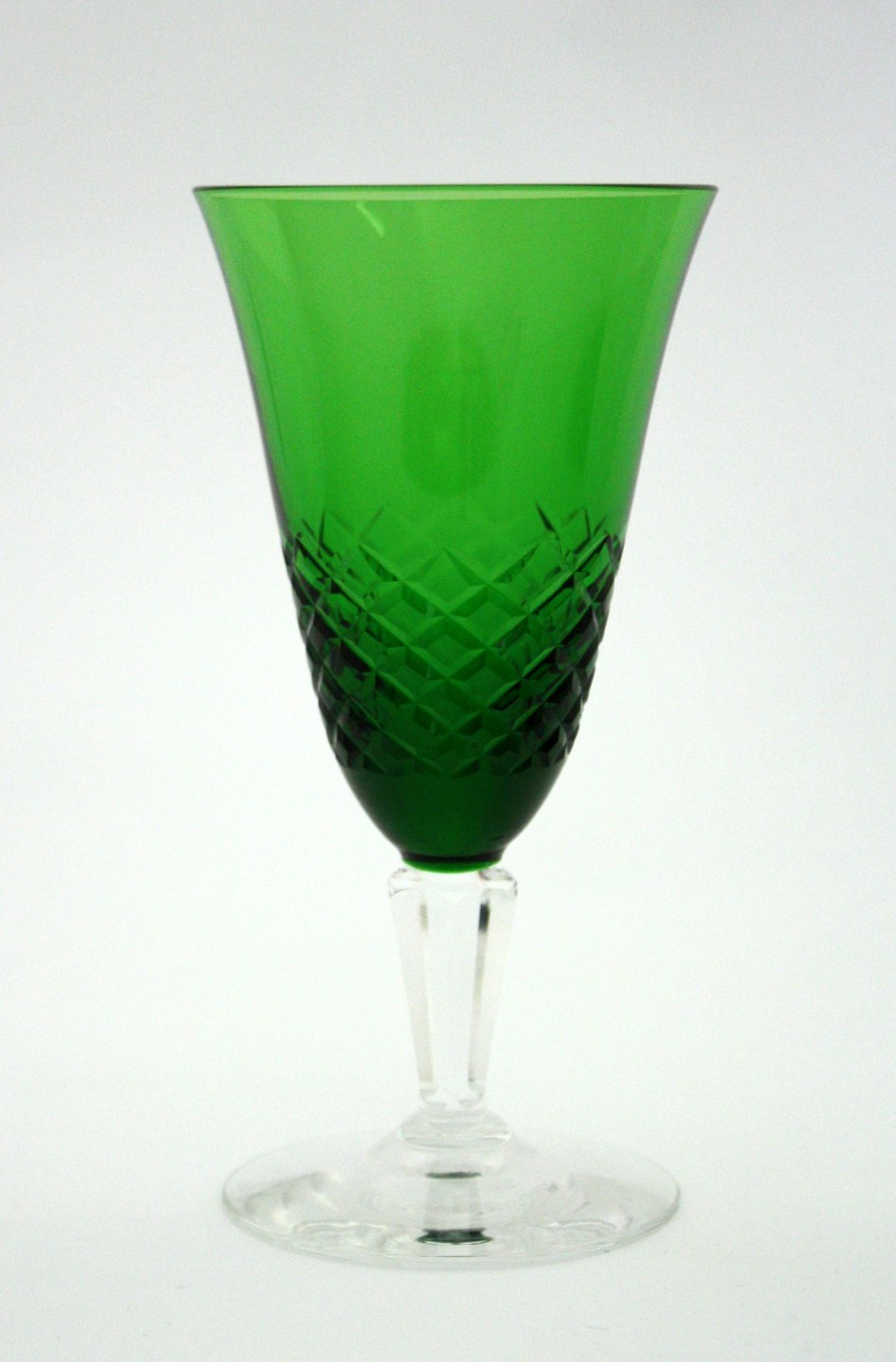 Holmegaard Glasværk, Ravnsborg krystalglas med slibning på kumme og slebet stilk. Designet af Jacob E. Bang i 1952. Produceret frem til 1967.