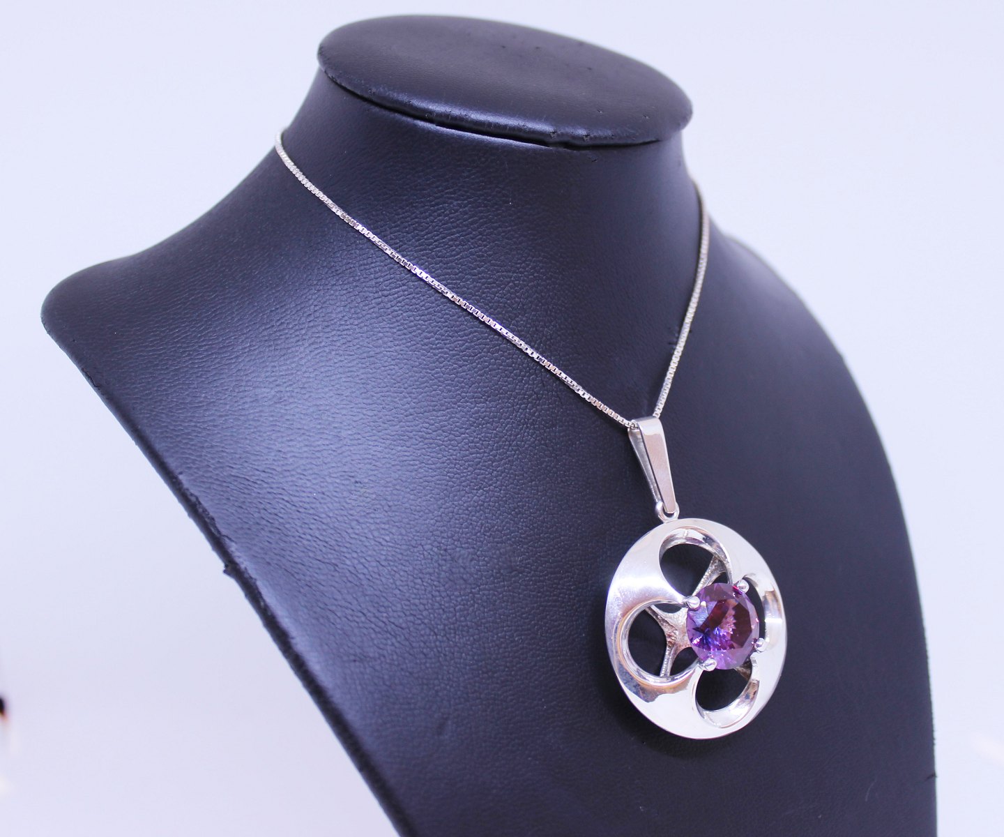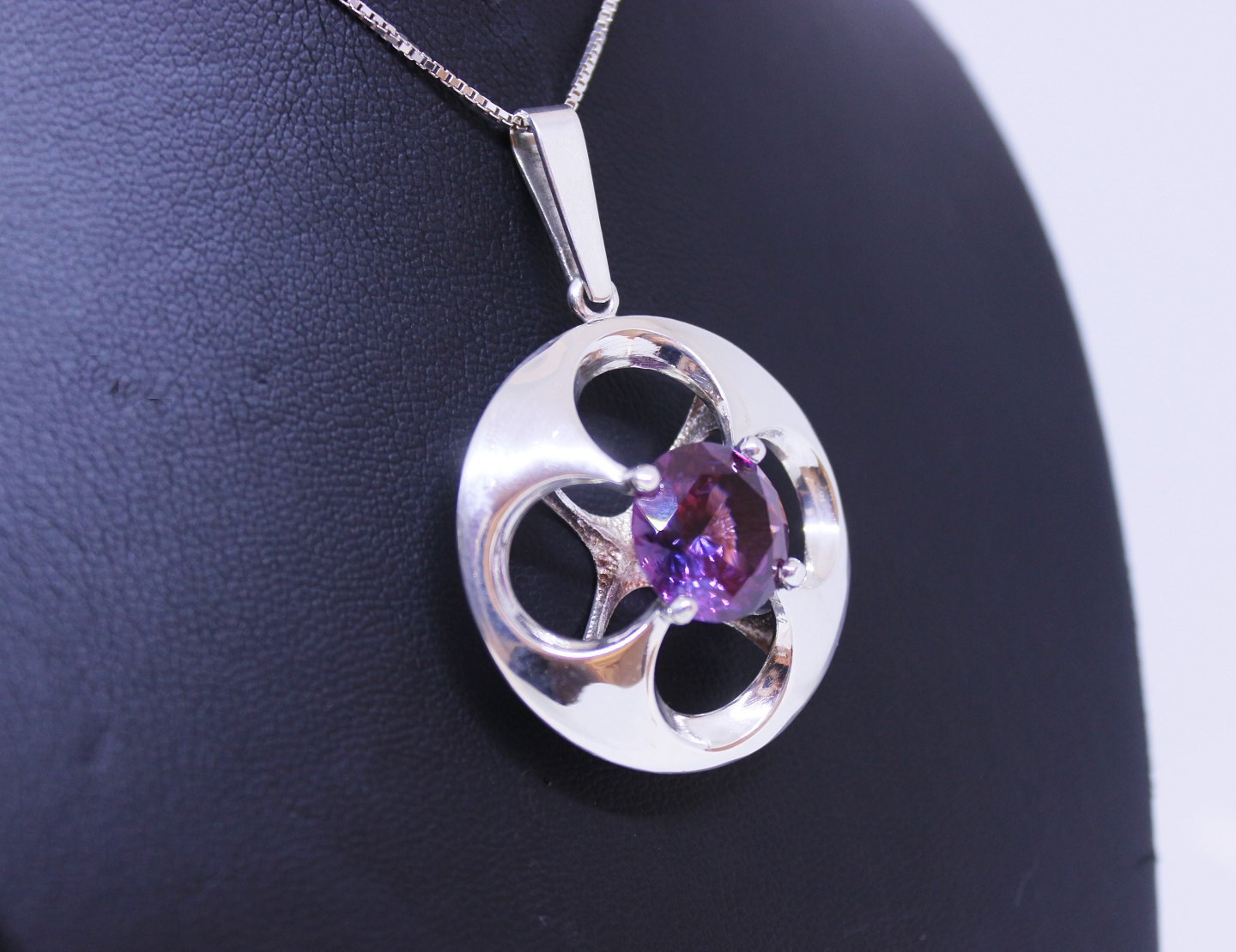 Stort vedhæng af 925 sterling sølv stemplet H.S. med stor ametyst.