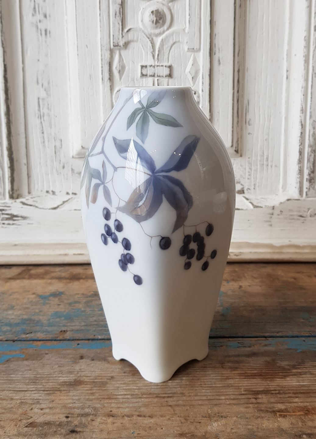 Royal Copenhagen Art Nouveau vase dekoreret med hyldebær