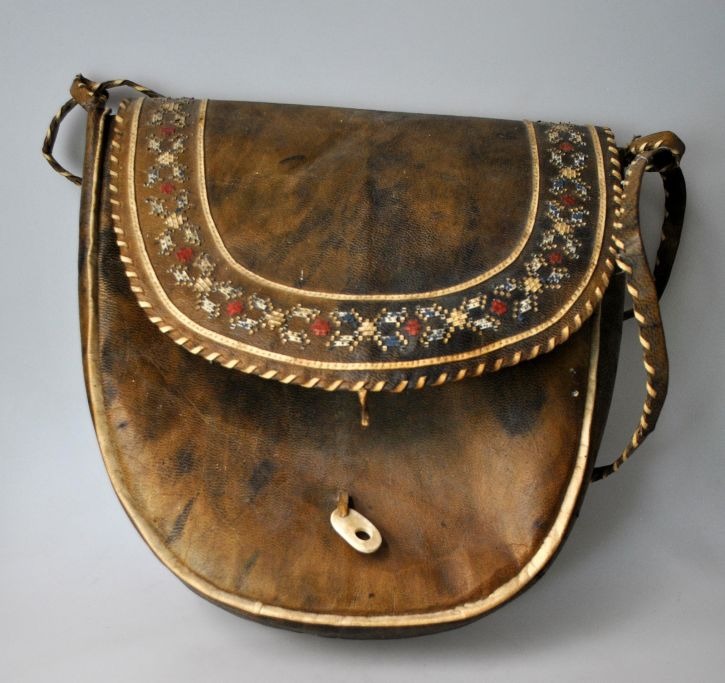 Grønlandsk broderet taske i sælskind med monogram, 20. årh