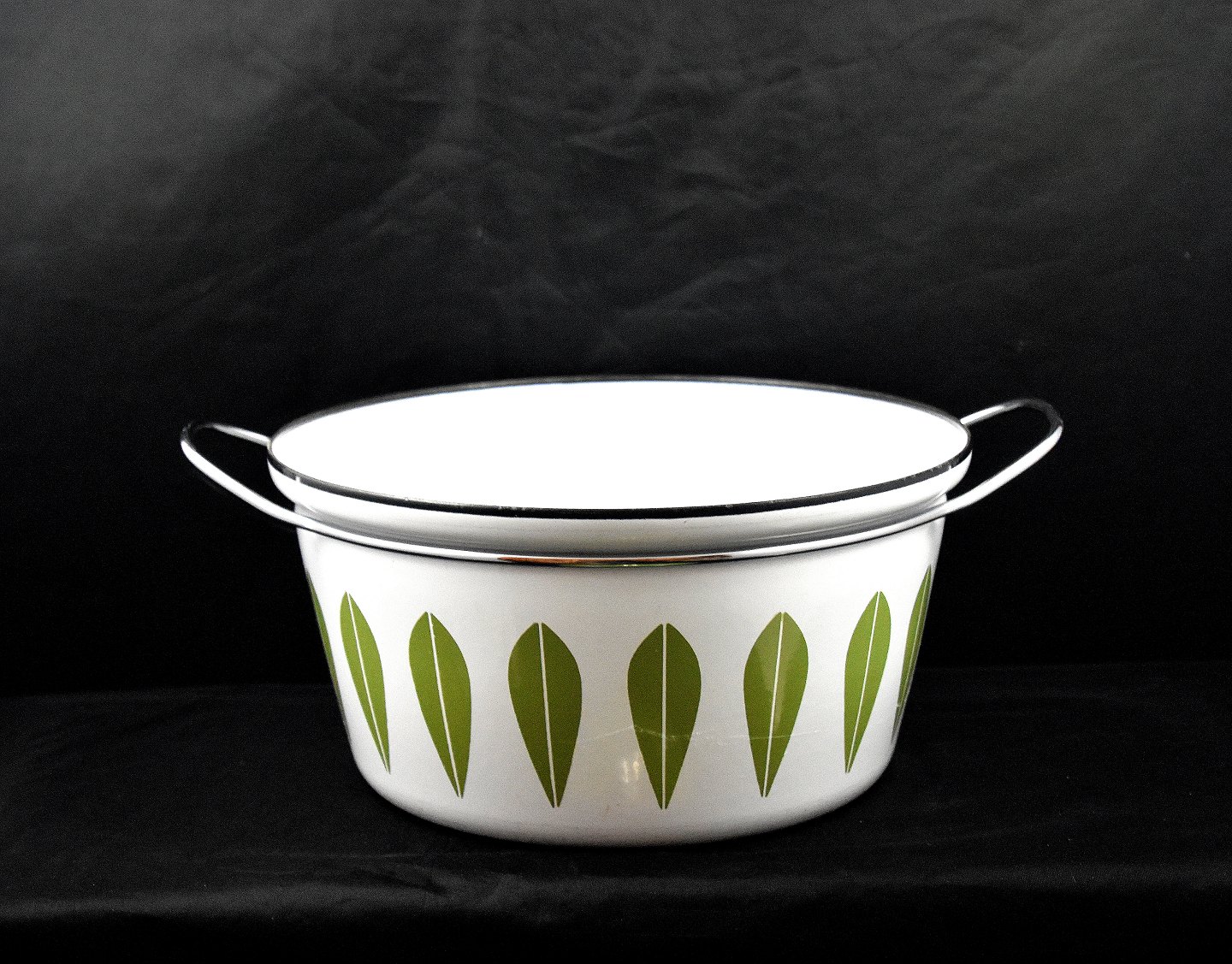 Lotusgryde med limegrønne blade og limegrønt låg. Gryden er emaljeret