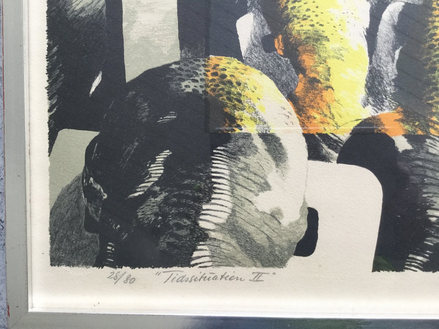 Litografi af Poul Janus Ipsen - "Tidssituation II" 1973.
