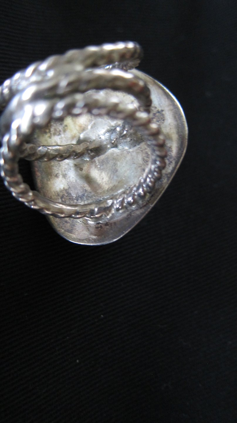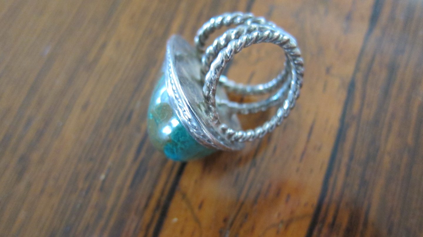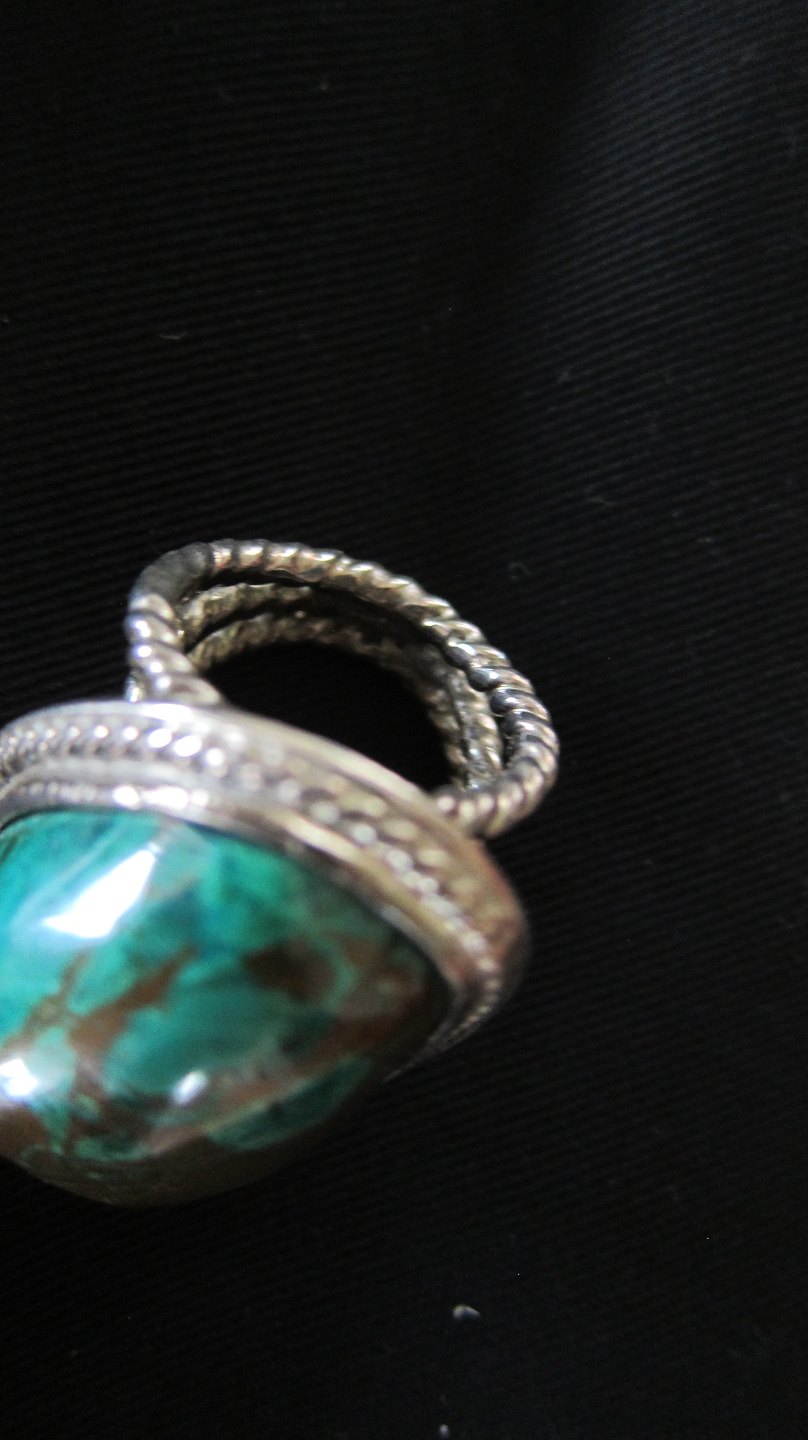 A ring made of silver with a beautiful green stone ,- a very beautiful and personable ring