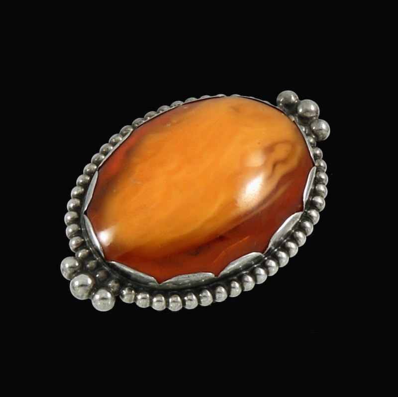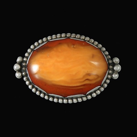 Kay Bojesen. Art Nouveau Silver Brooch with Amber.