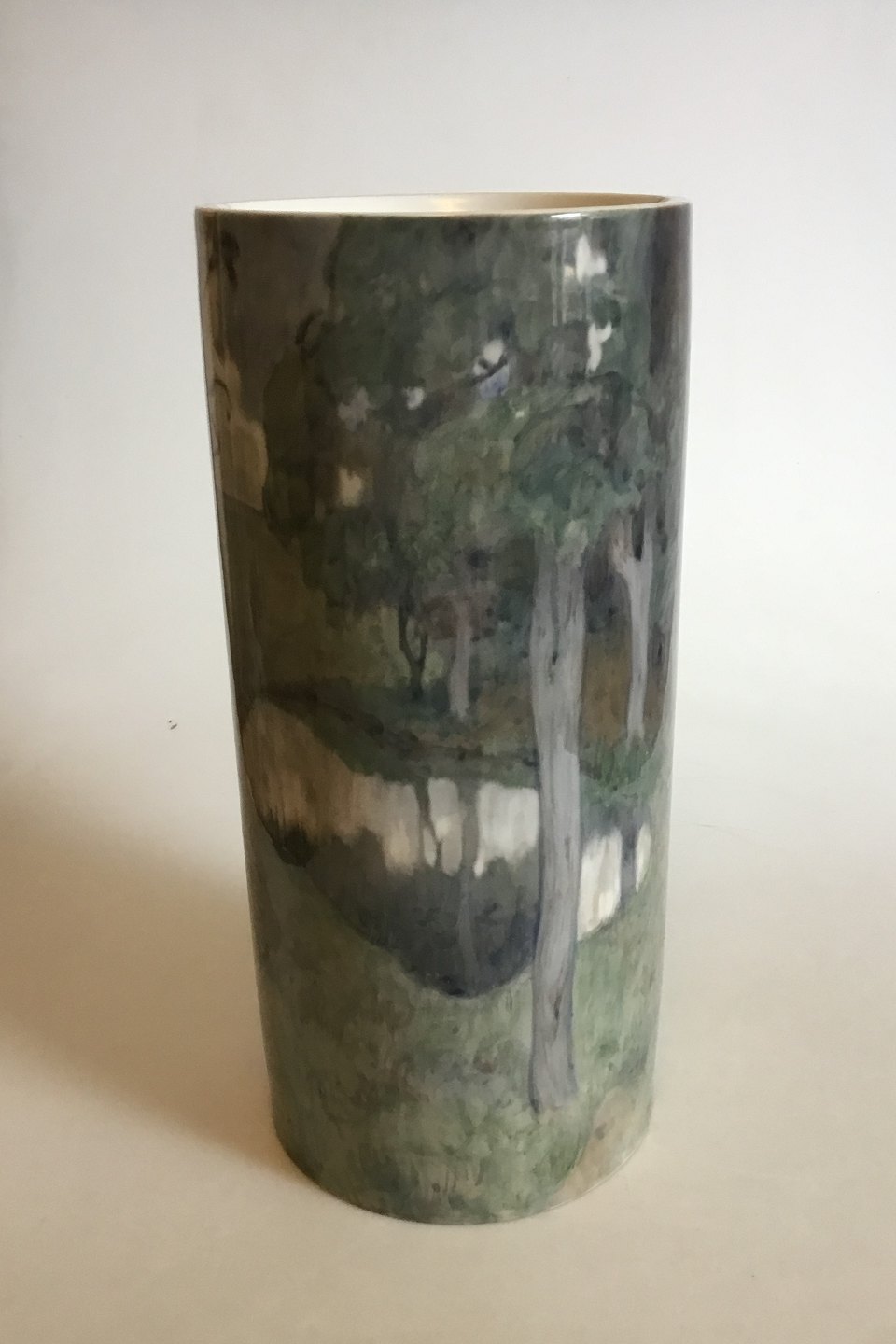 Unika Bing & Grøndahl Art Nouveau cylindrisk Vase. Mærket XXVIII (28) og EH. Måler 35 cm x 16 cm dia.