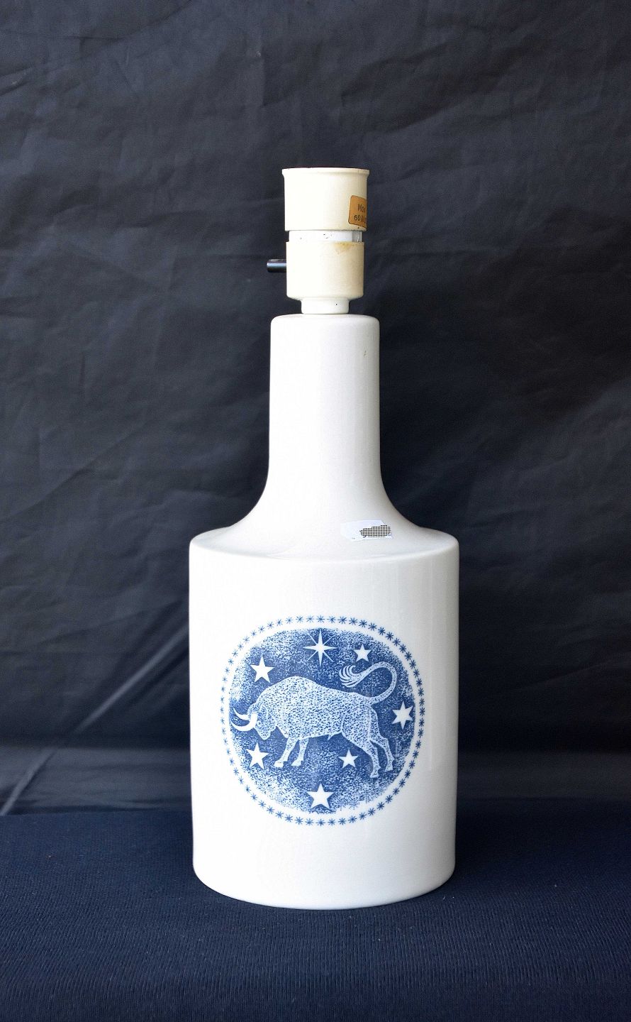 Royal Copenhagen, RC, Den Kongelige Porcelænsfabrik, KGL., stjernetegn, "Tyren", bordlampe, porcelæn