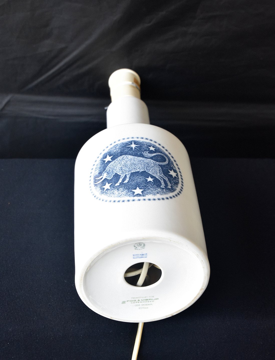 Bordlampe med motiv af "Tyren", nr. 927244, stjernetegn. Kun udført i 1200 eksemplarer. Fremstillet hos Royal Copenhagen for Fog & Mørup