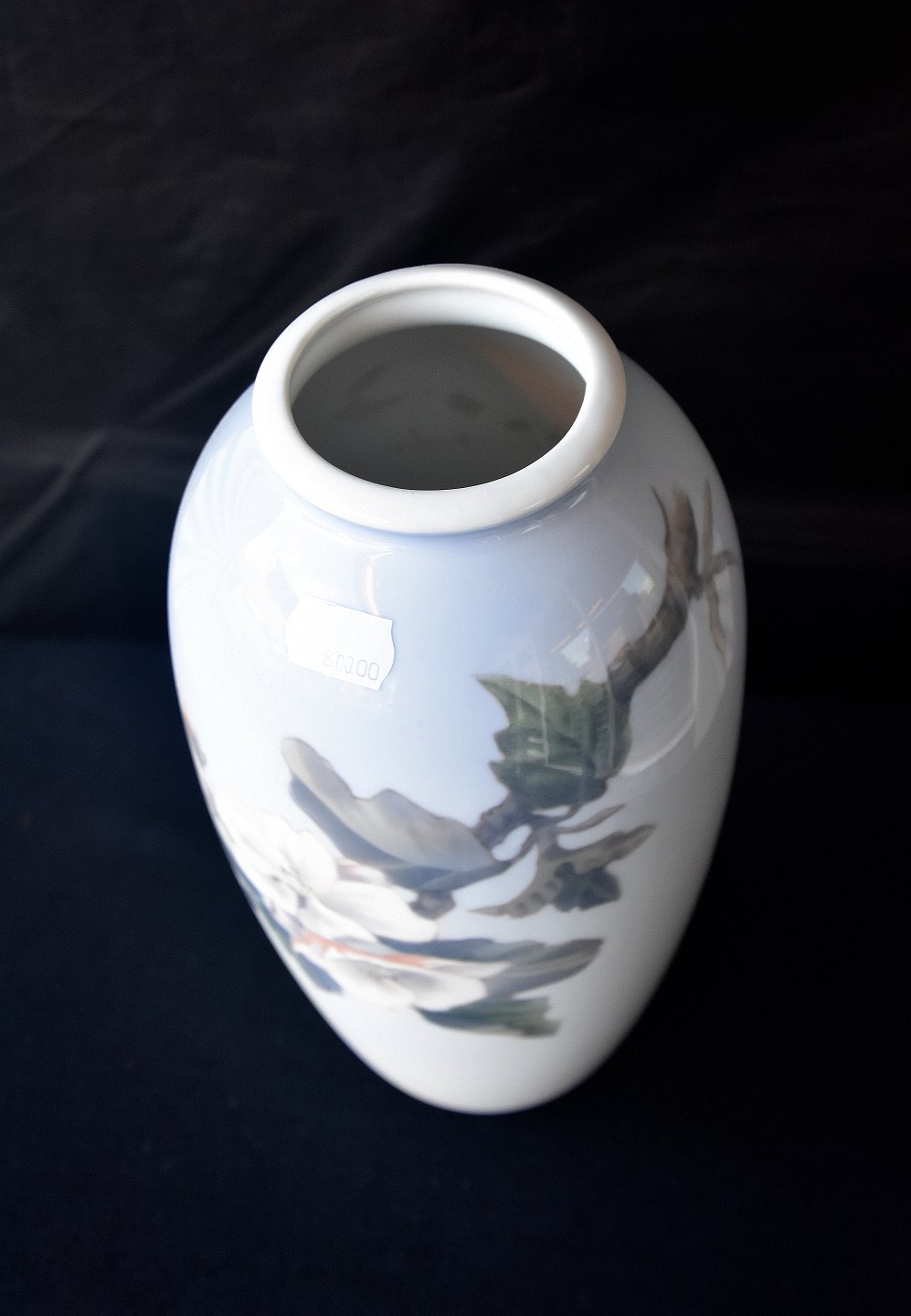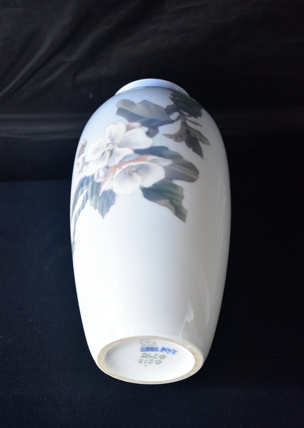 Royal Copenhagen vase, nr. 2629/2129, dekoreret med en æblegren med blomster og bagpå er der en sommerfugl