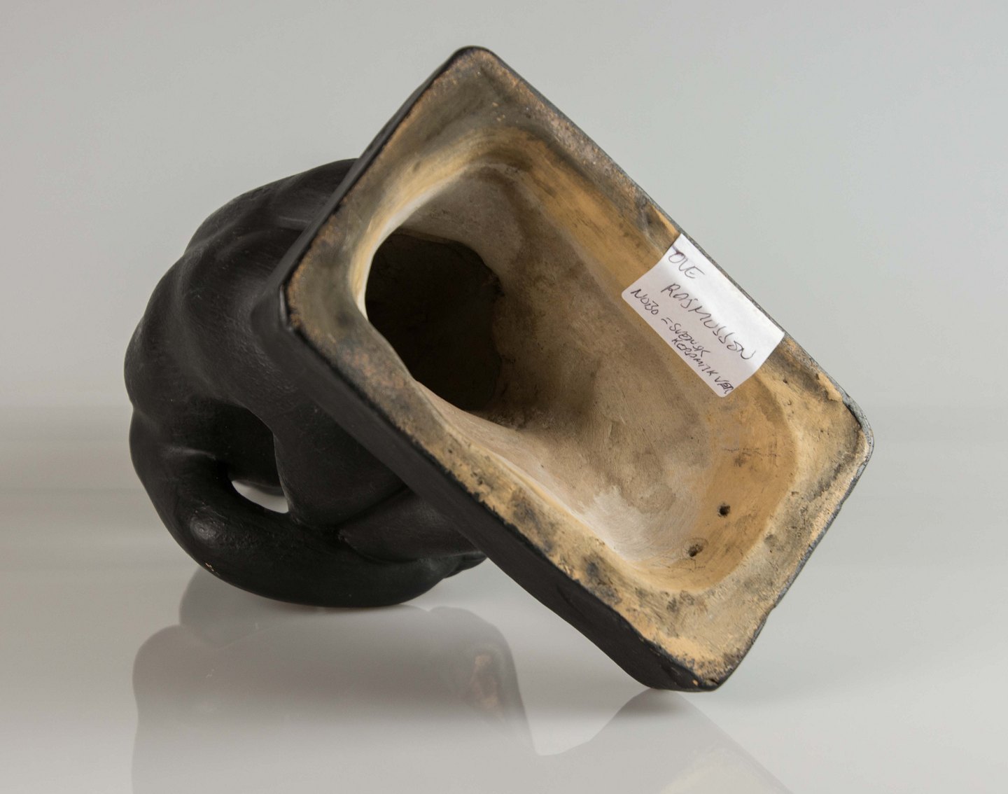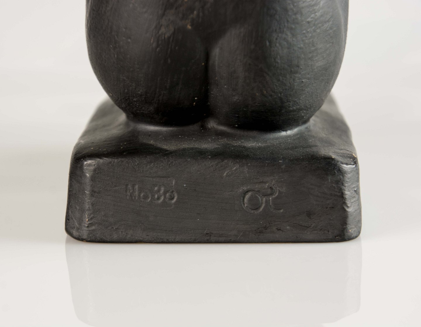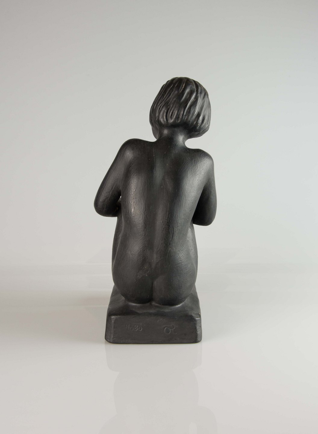 Figur i sort malet keramik med motiv af siddende nøgen kvinde