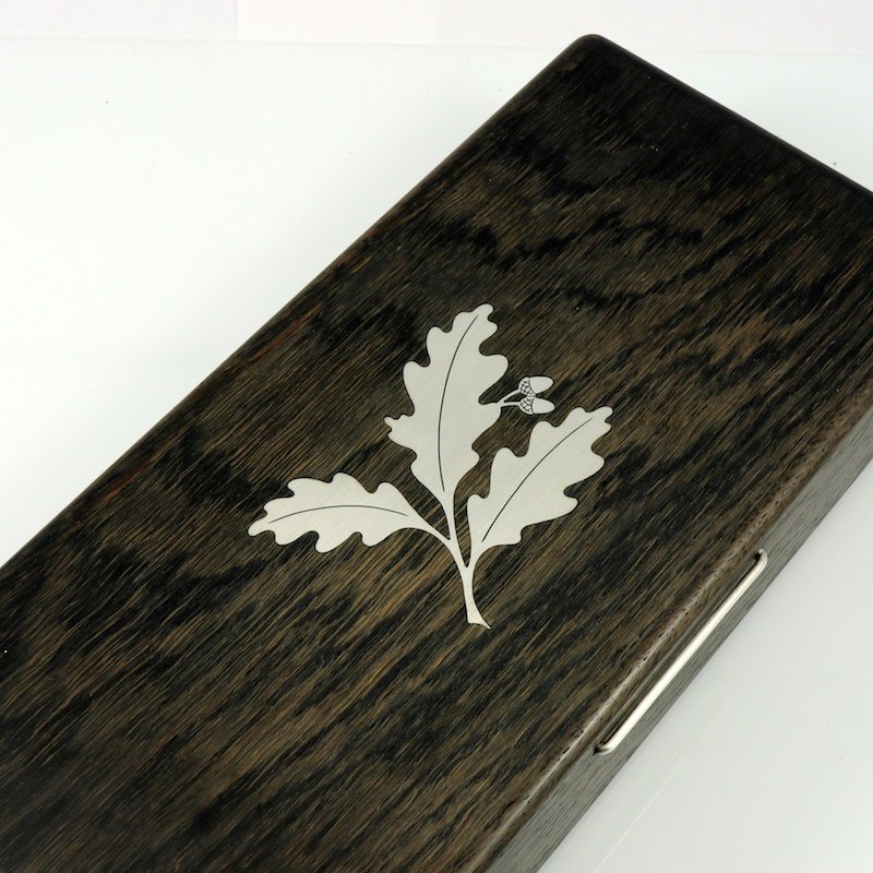 Æske i moseeg med sterling sølv intarsia. 1960erne