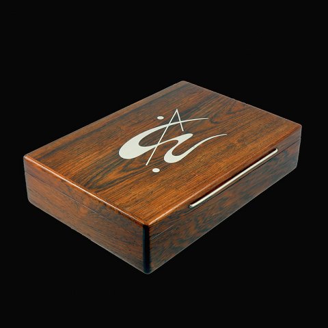 Rio Rosewood Box with Inlaid Sterling Silver 'Abstract Motif'- Denmark - 1960s
