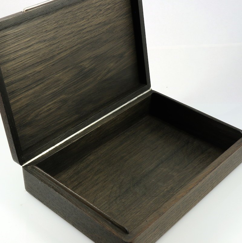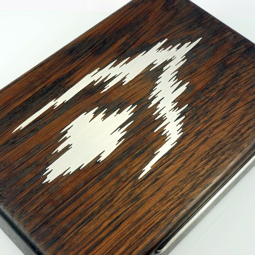 Æske i moseeg med sterling sølv intarsia. 1960erne