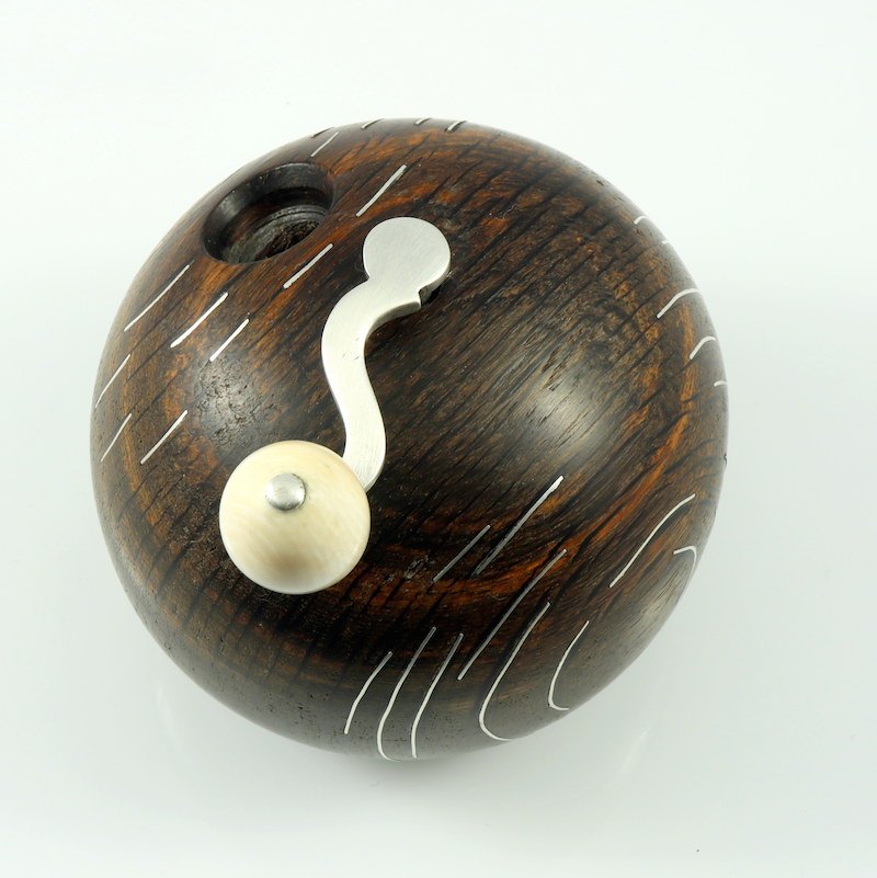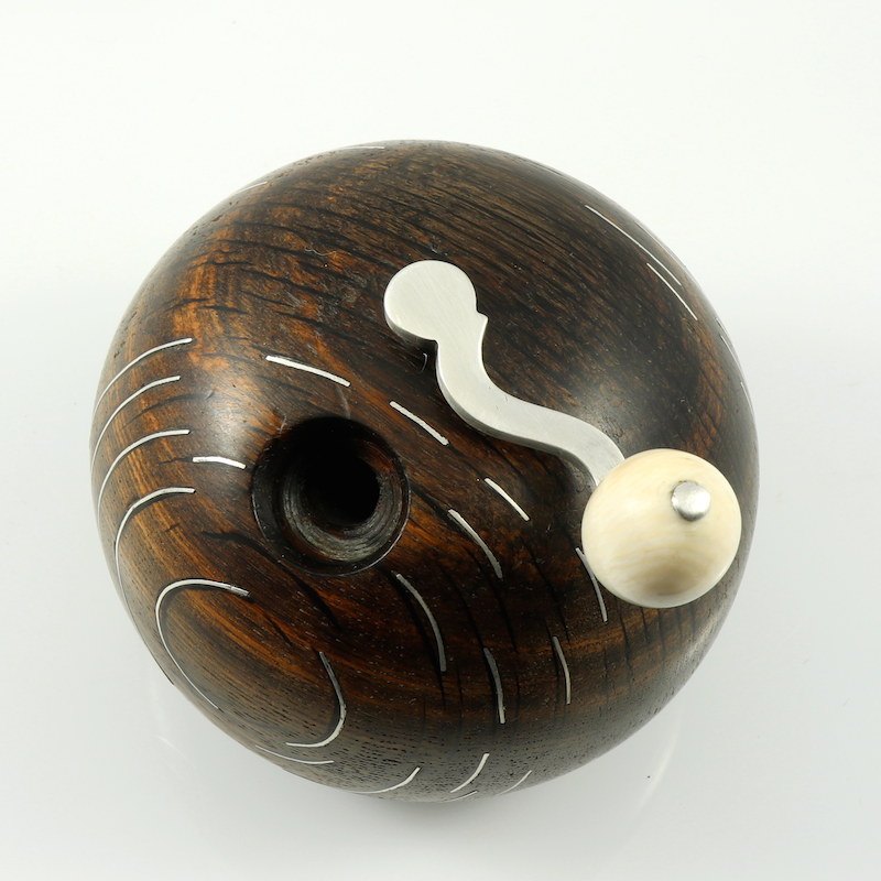Frantz Hingelberg. Bog Oak Pepper Mill with Inlaid Sterling Silver - 1960s