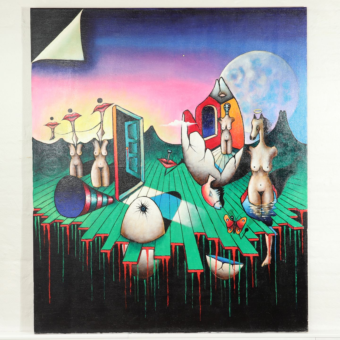 Surrealistisk maleri af Hans Nielsen f. 1923 d. 1998, 'Amused to Death'