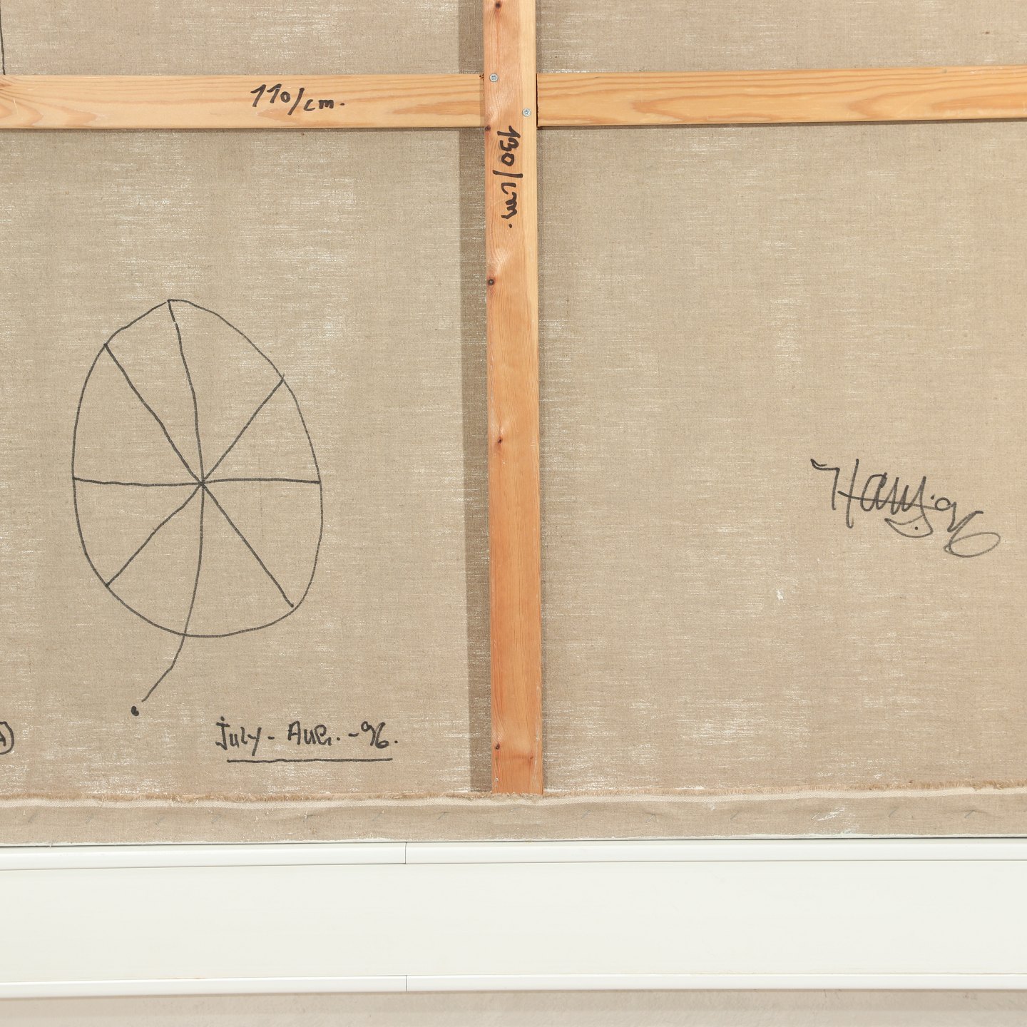 olie på lærred uden ramme, Højde 130 cm, bredde 110 cm, signeret på bagsiden