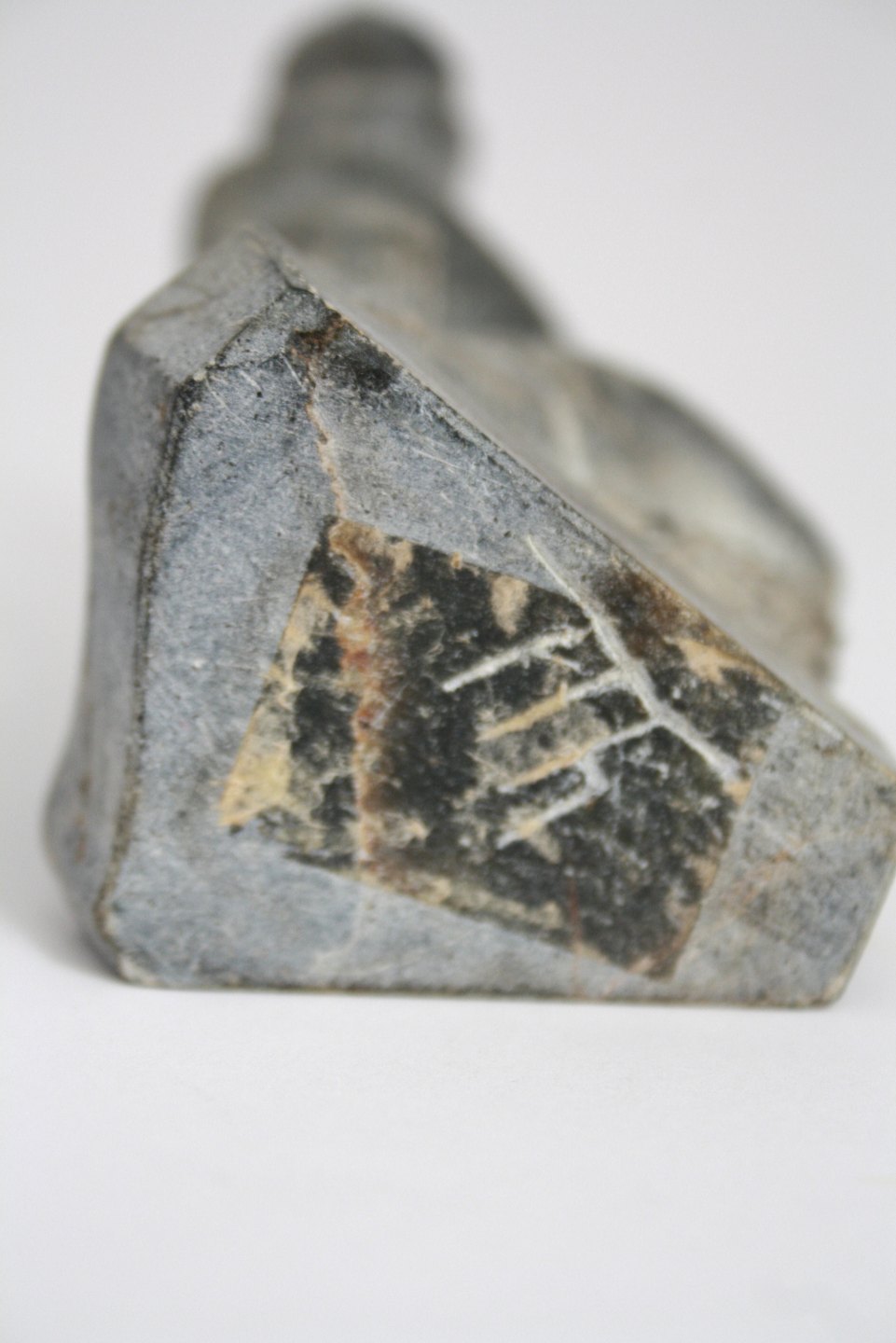Figur af fedtsten Grønlænder med barn. Højde 12 cm. Pris: 650 kr.