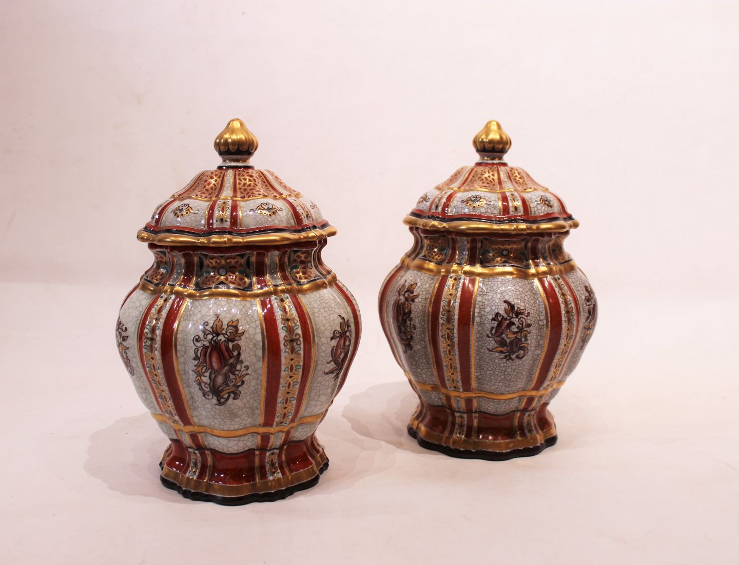 A pair of lidded jars of stoneware by Dahl Jensen.
