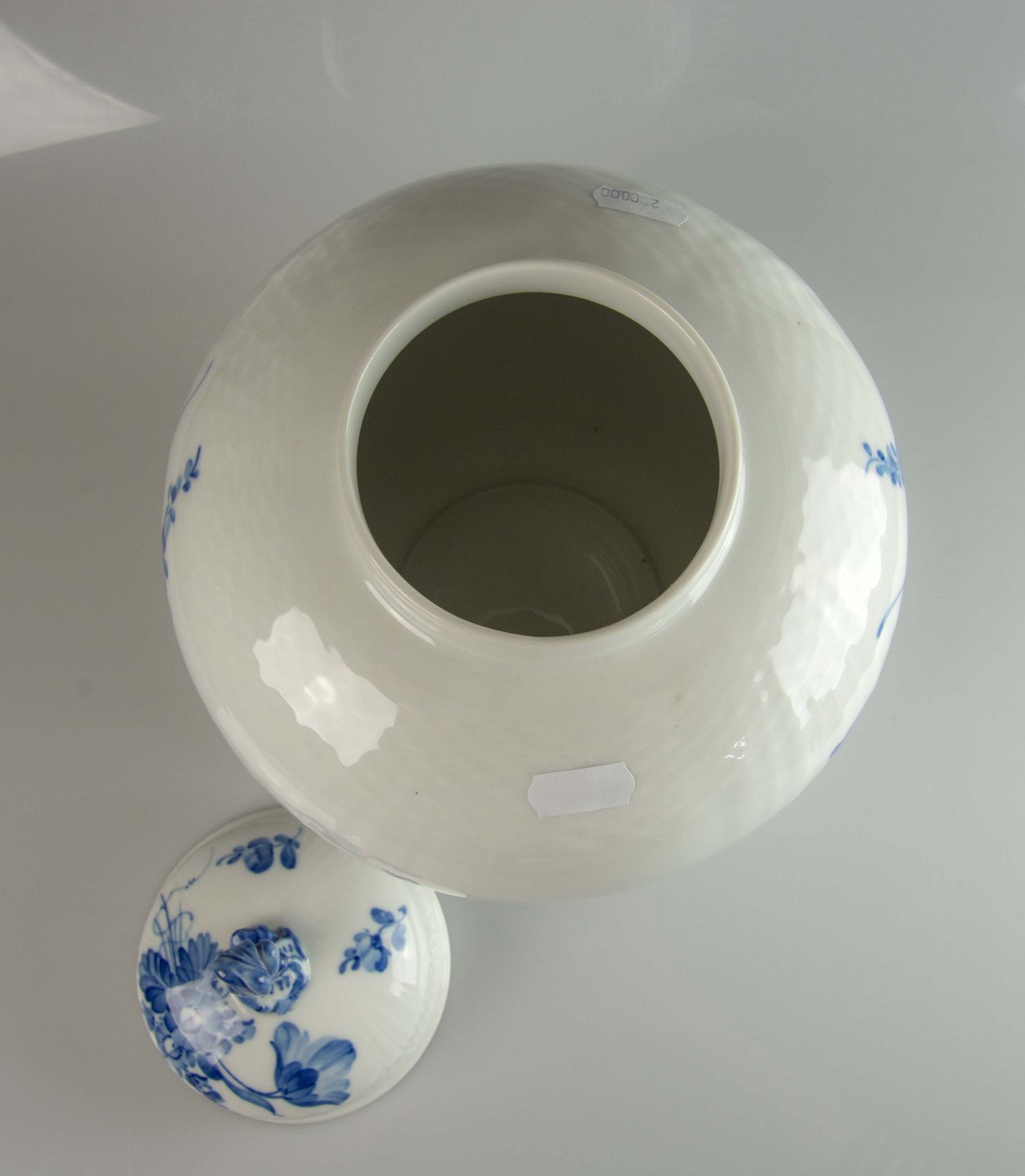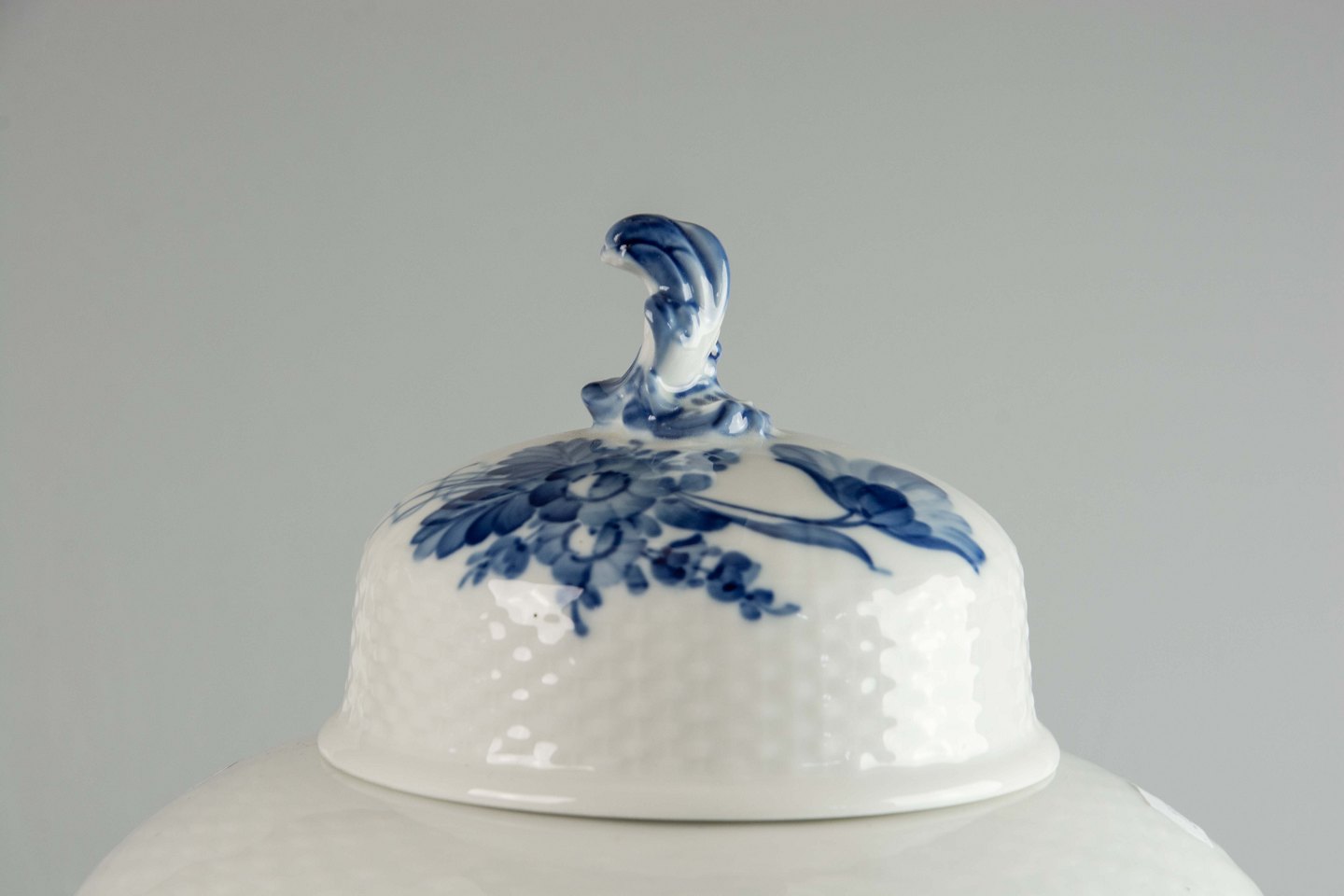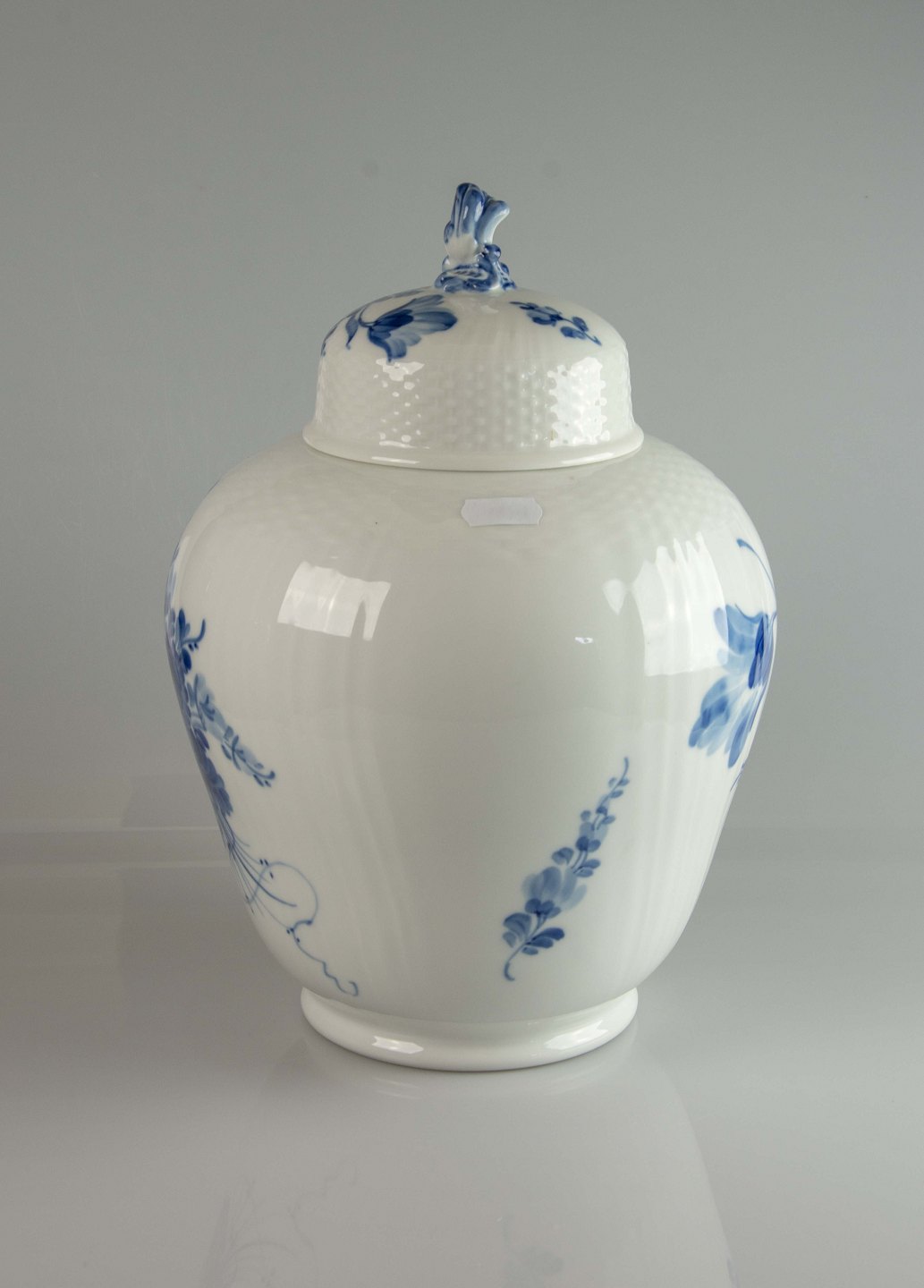 Høj krukke med låg i porcelæn i serien svejfet flettet Blå blomst nr. 10/1791