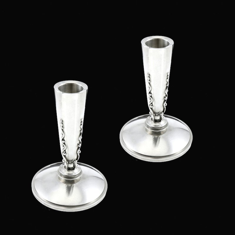 Evald Nielsen 1879-1958. Par art deco stager i sterling sølv.